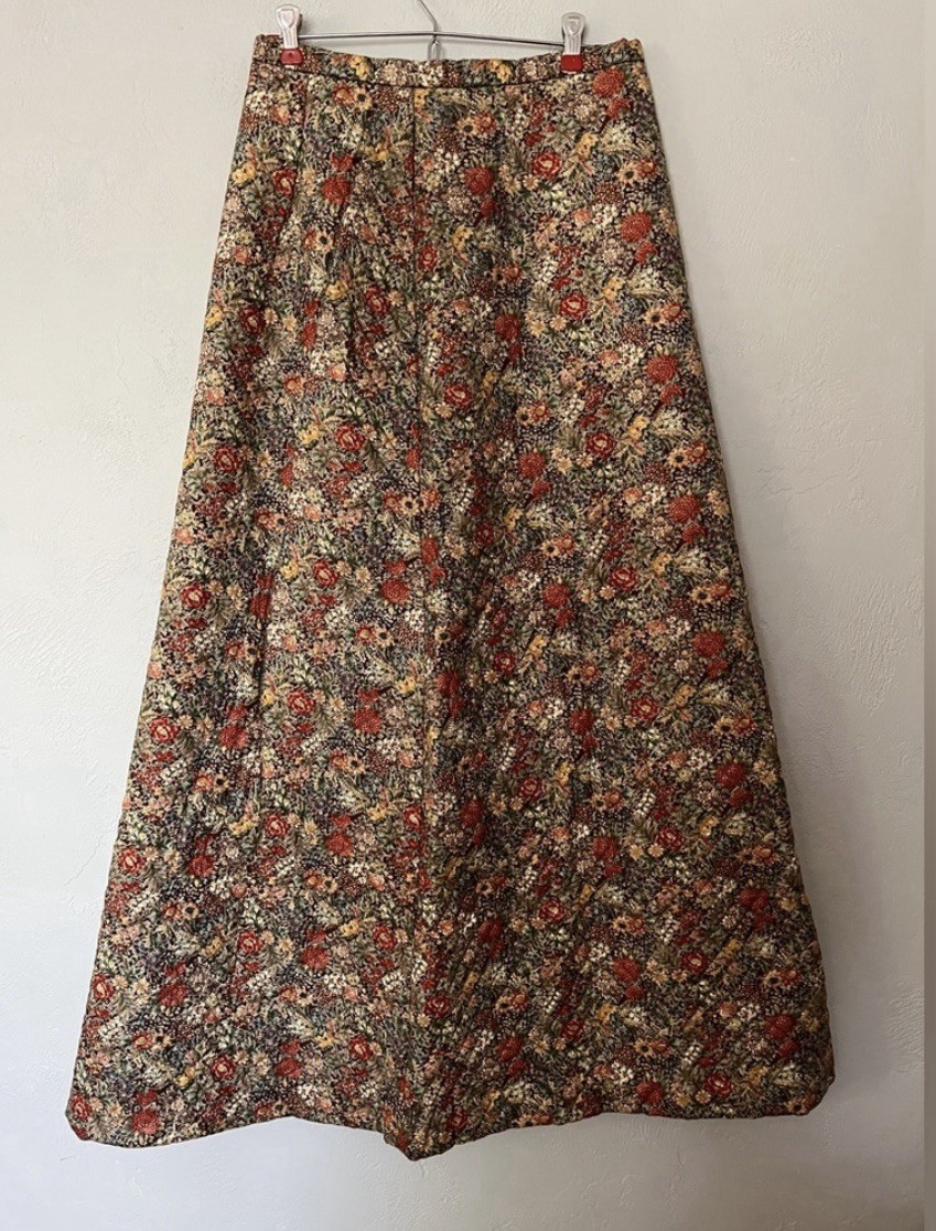 как выглядит Vintage 70s Quilted Handmade Brown Floral Cottagecore Maxi Skirt 28 Waist фото
