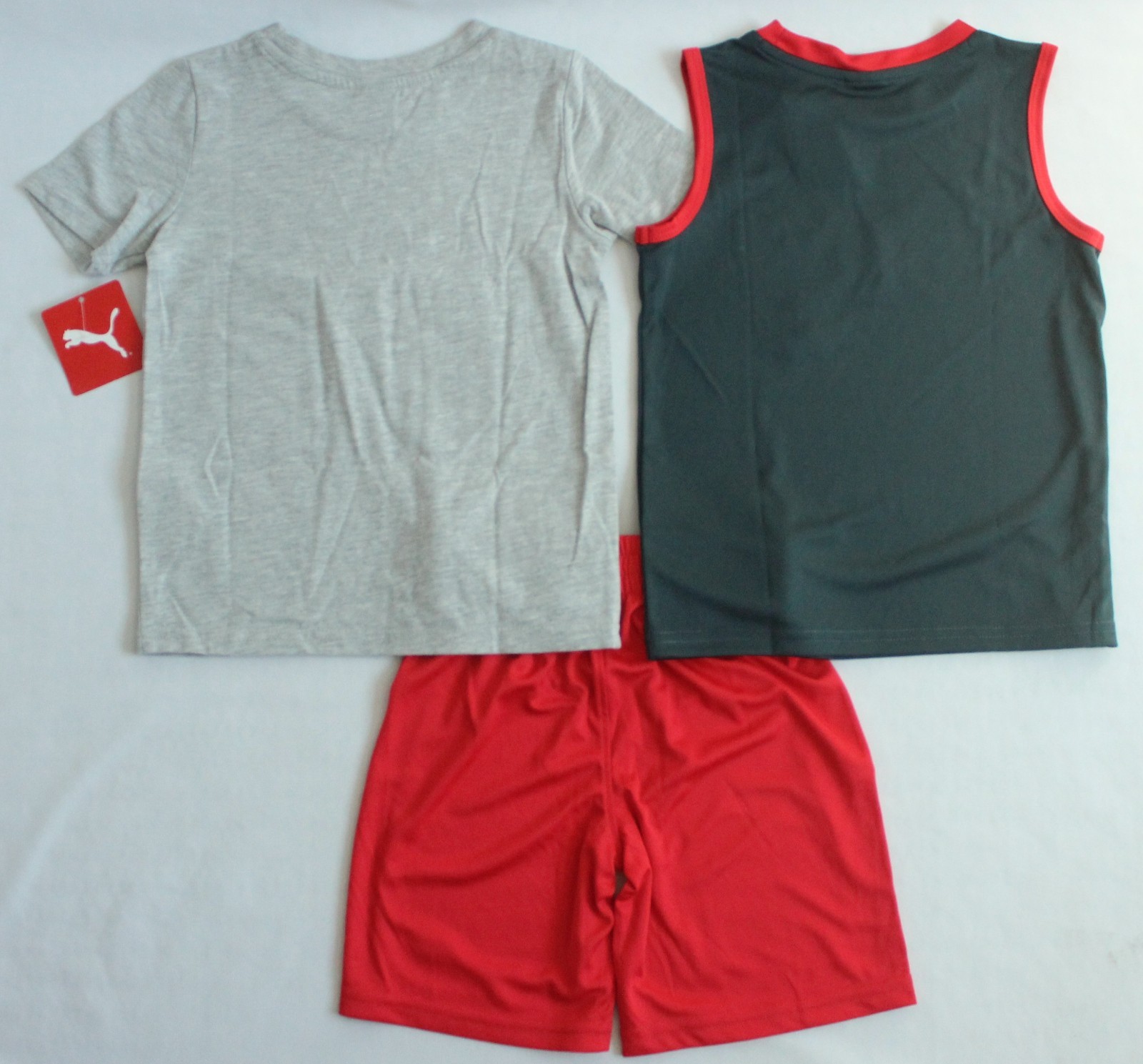как выглядит Puma Boys Size 4 3-Pc Jersey SS Tee/Interlock Muscle Set PSP23V73-06116 Gray/Red фото