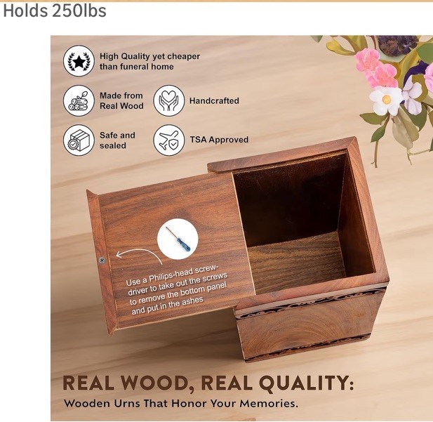 Handmade Rosewood Urn Tree of Life Memorial Keepsake Large Wood Hand Crafted