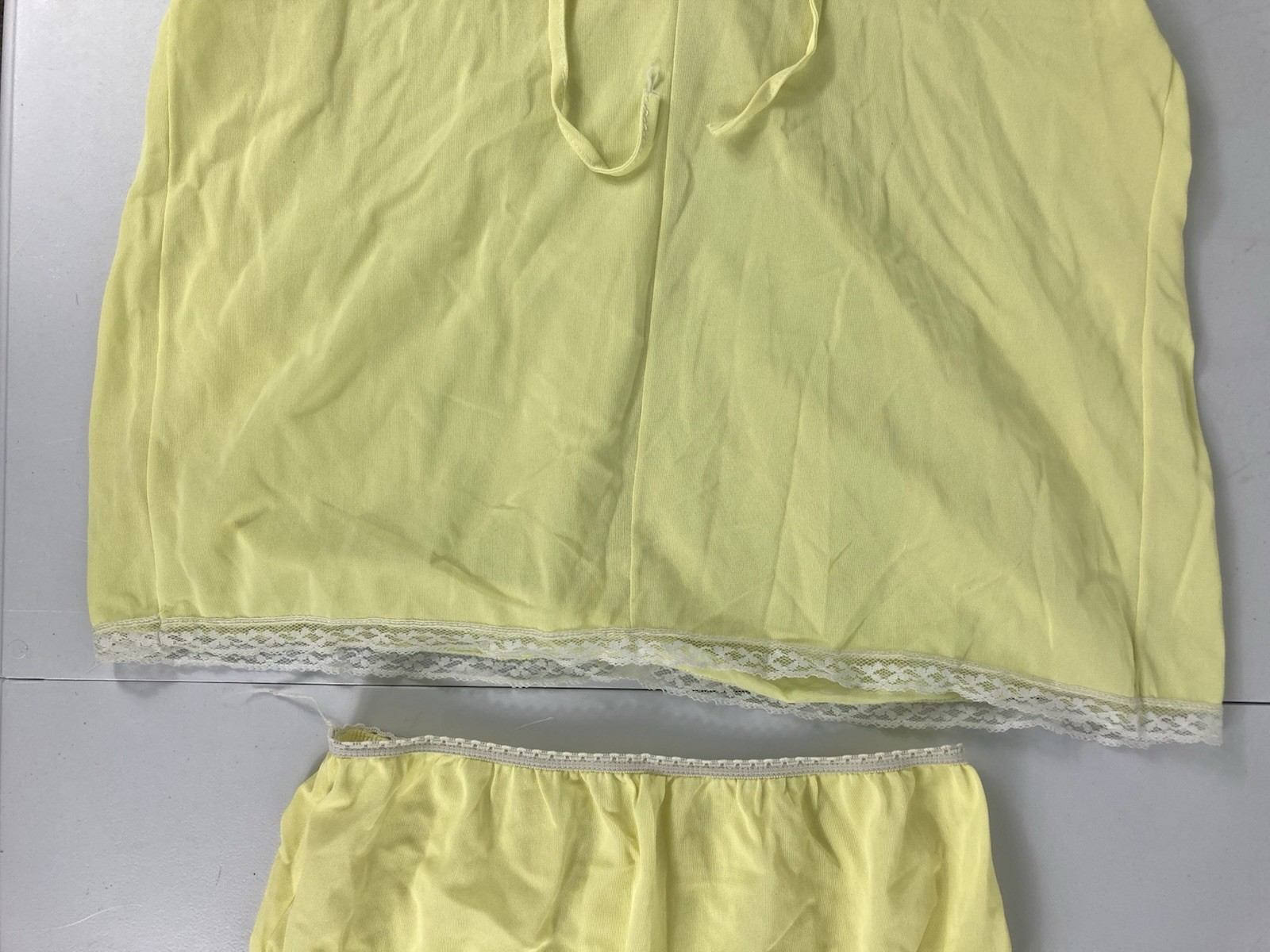 как выглядит Vtg Her Majesty Babydoll Pajamas PJs Sleepwear Yellow Lace Top Bottom Girls 12 фото
