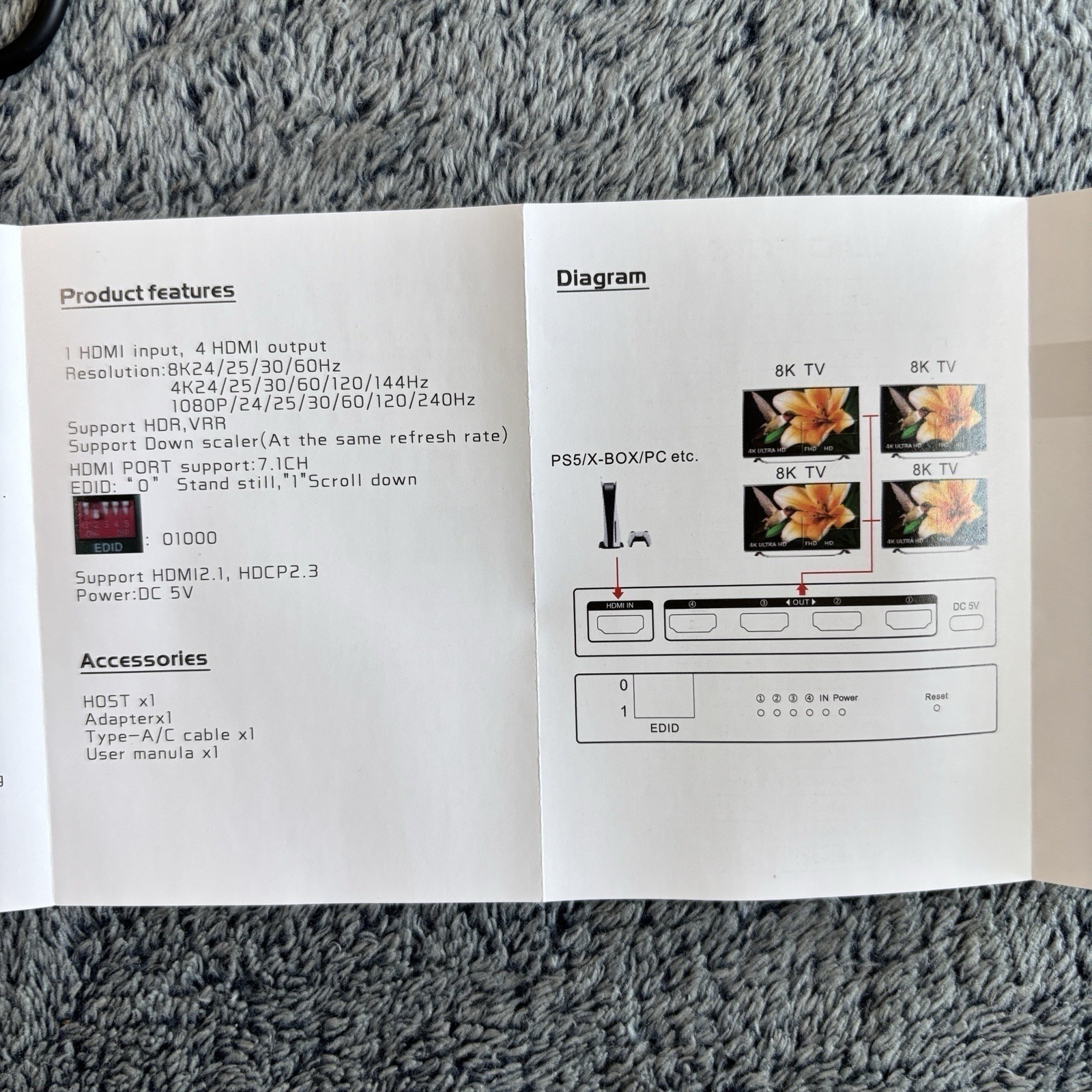 Daoistek 8K HDMI Splitter 1x4 8K60Hz 4K120Hz HDR VRR Ultra HD Support Open Box