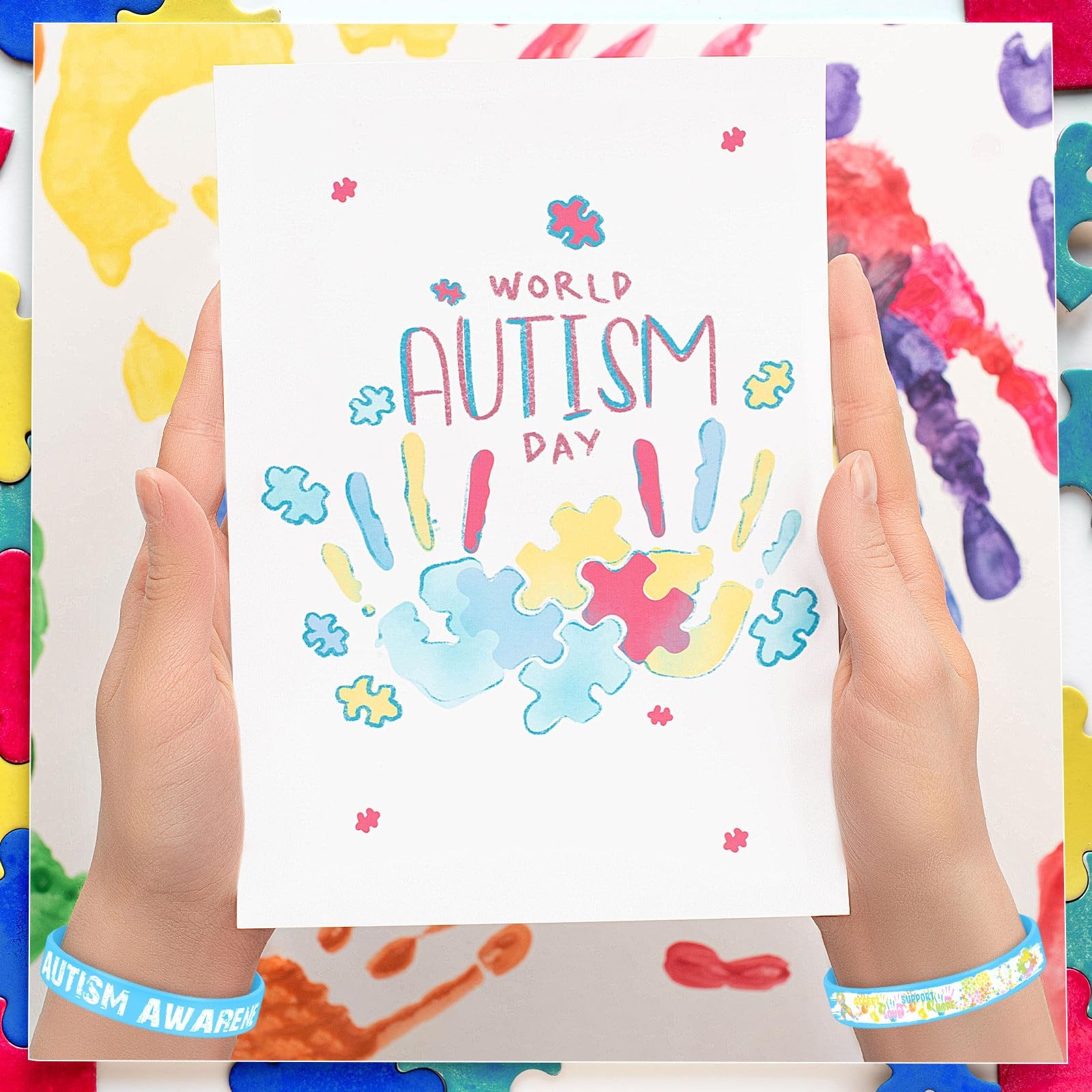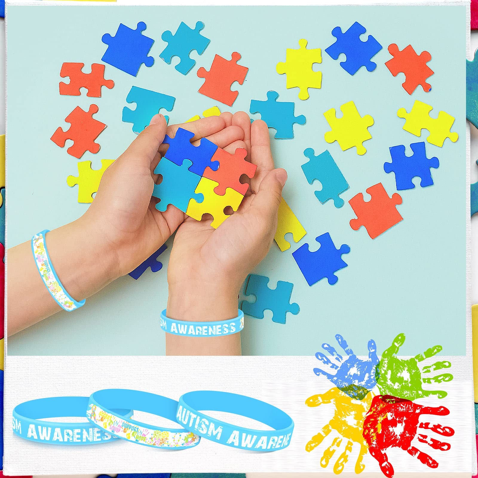100 Pcs Autism Awareness Bracelets Wristbands Bulk Colorful Puzzle Pieces Sil...