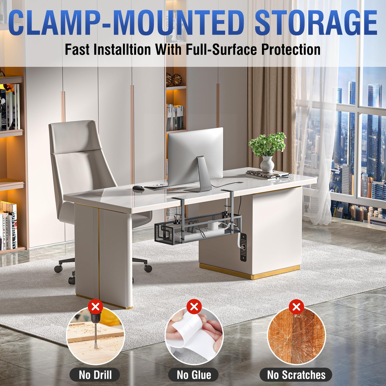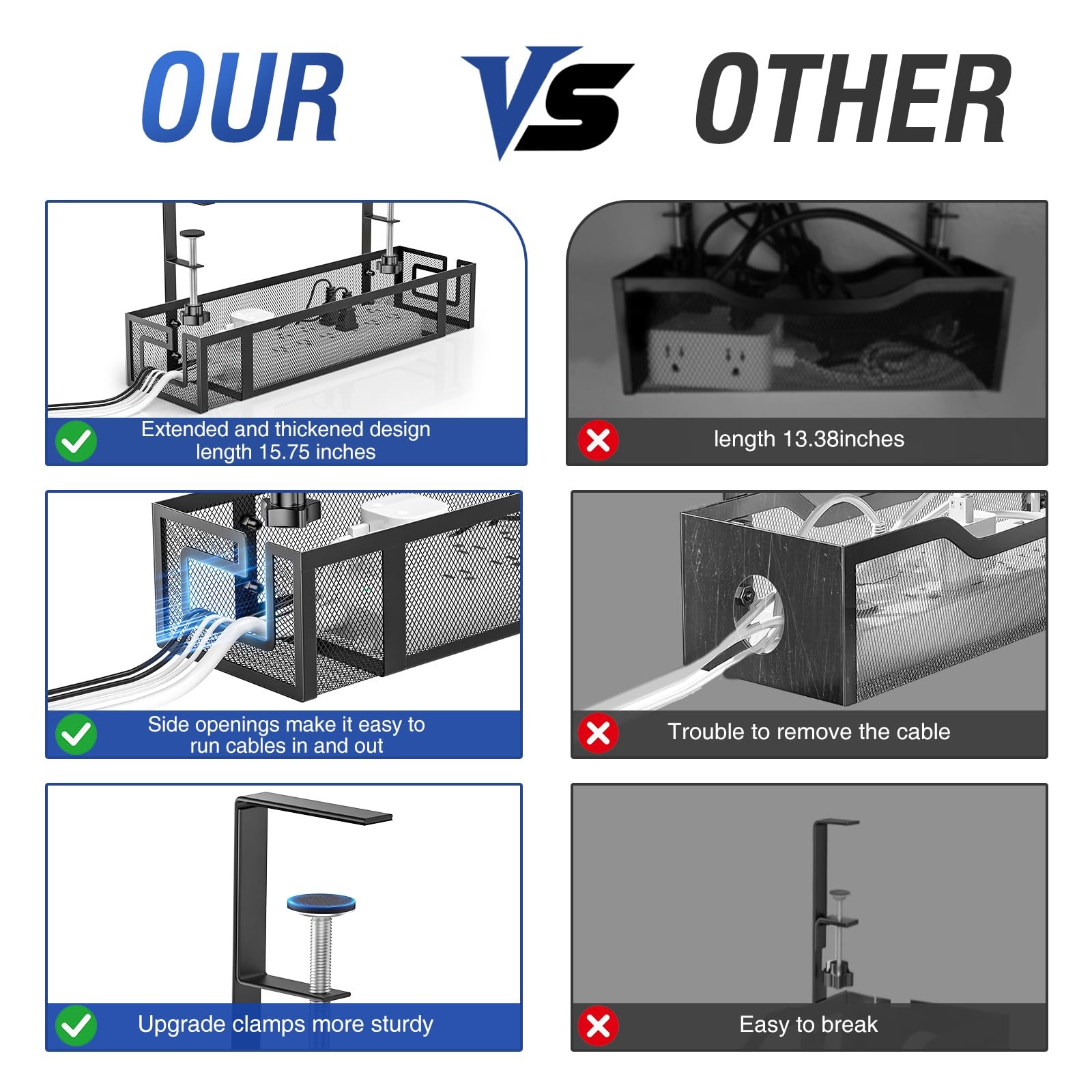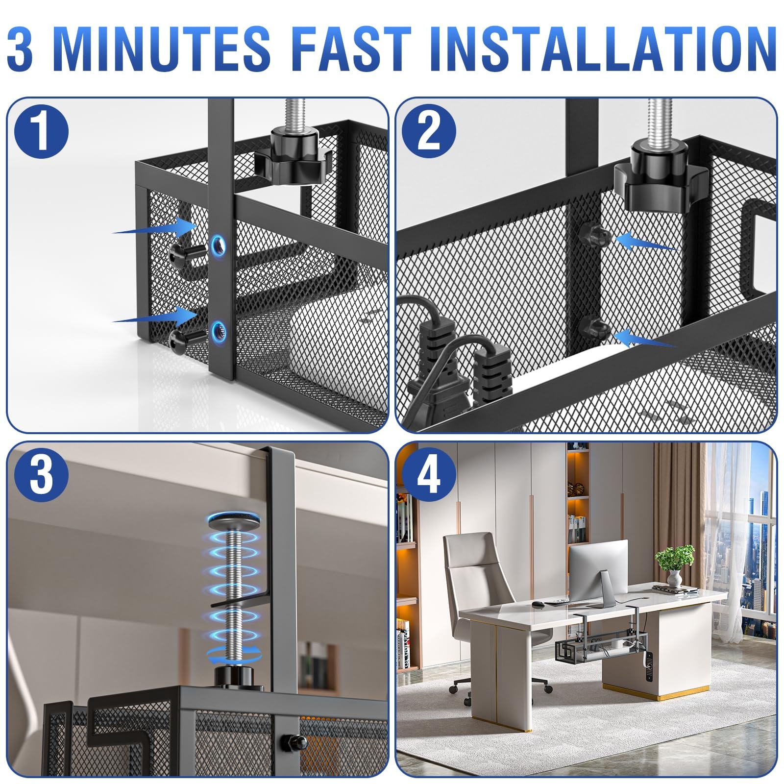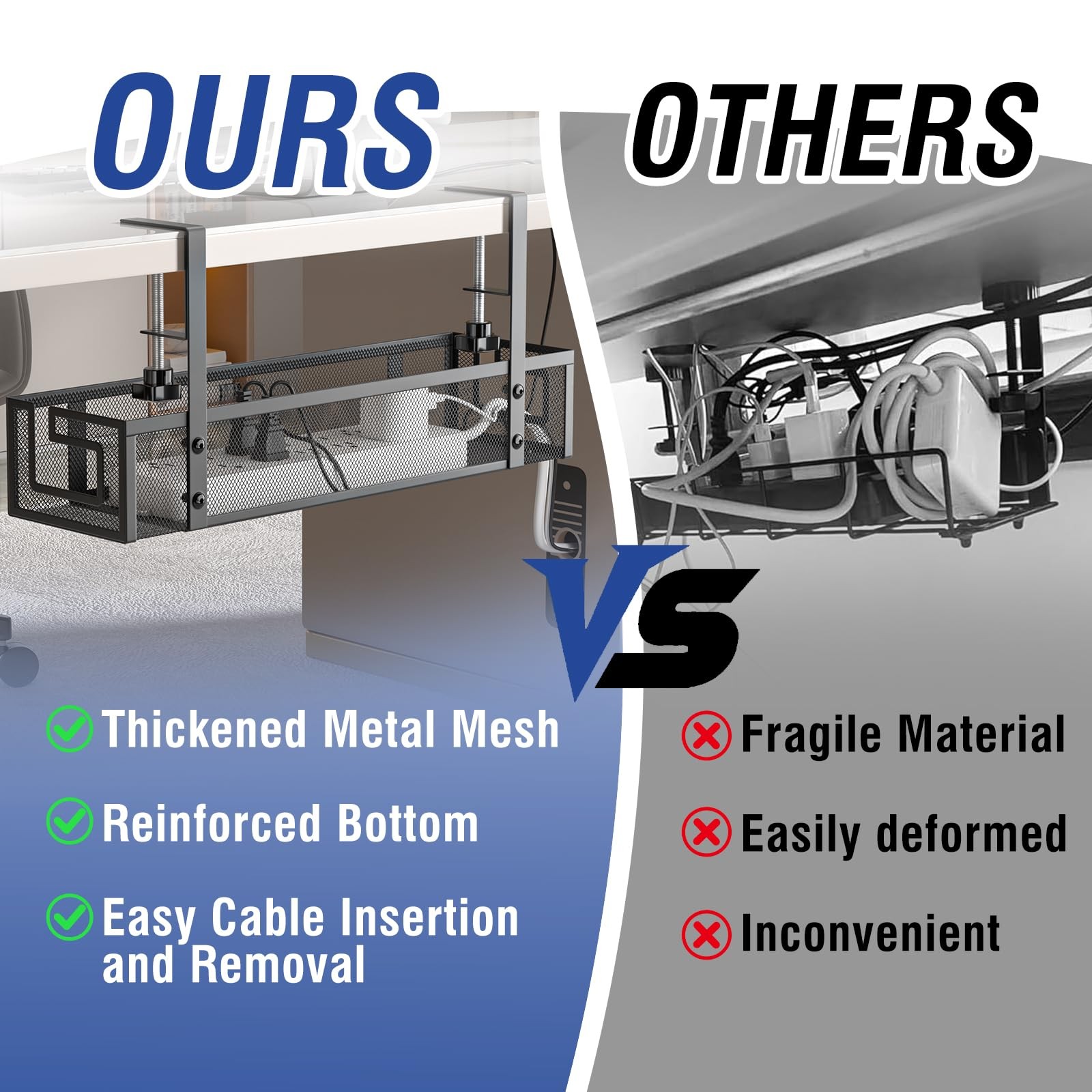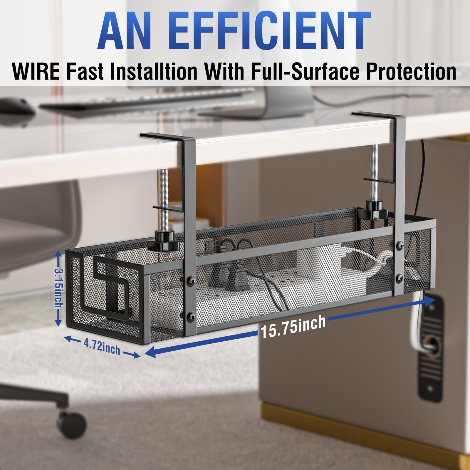 Under Desk Cable Management Tray, 15.75 No Drill Cable Management Under Desk...