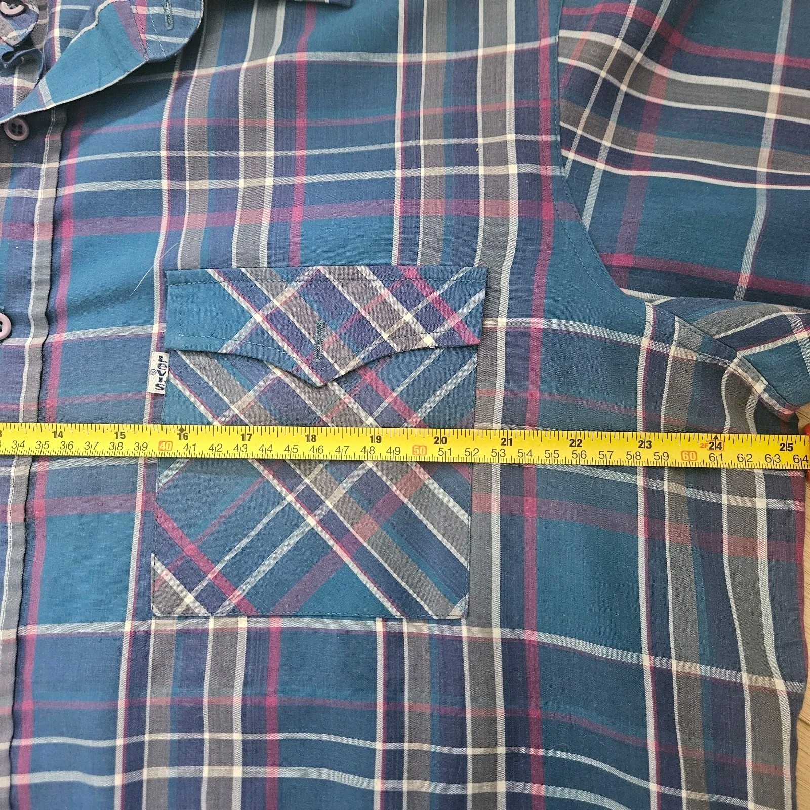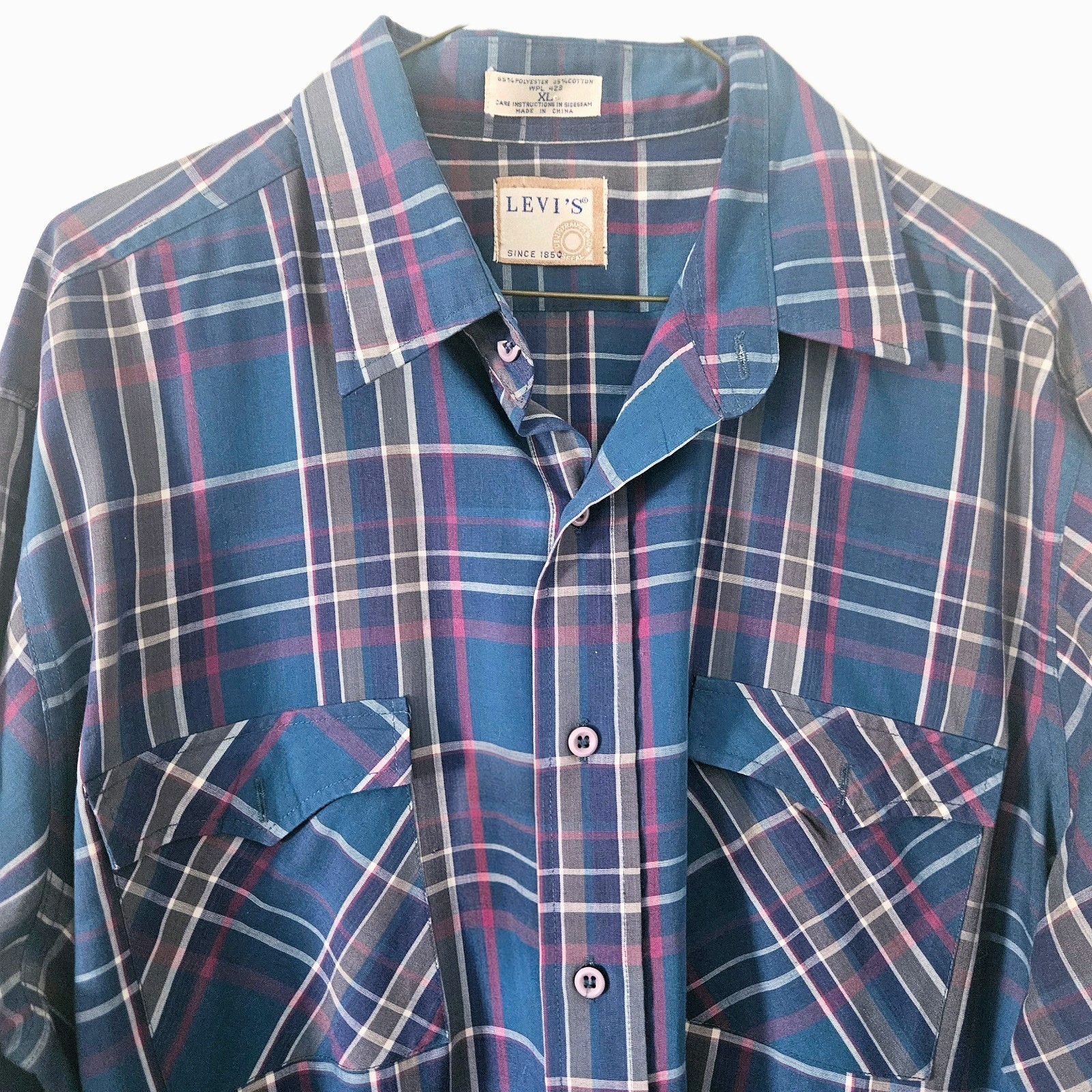 VTG Levi's Western Plaid Blue Long Sleeve Button Cotton Men's Shirt XL