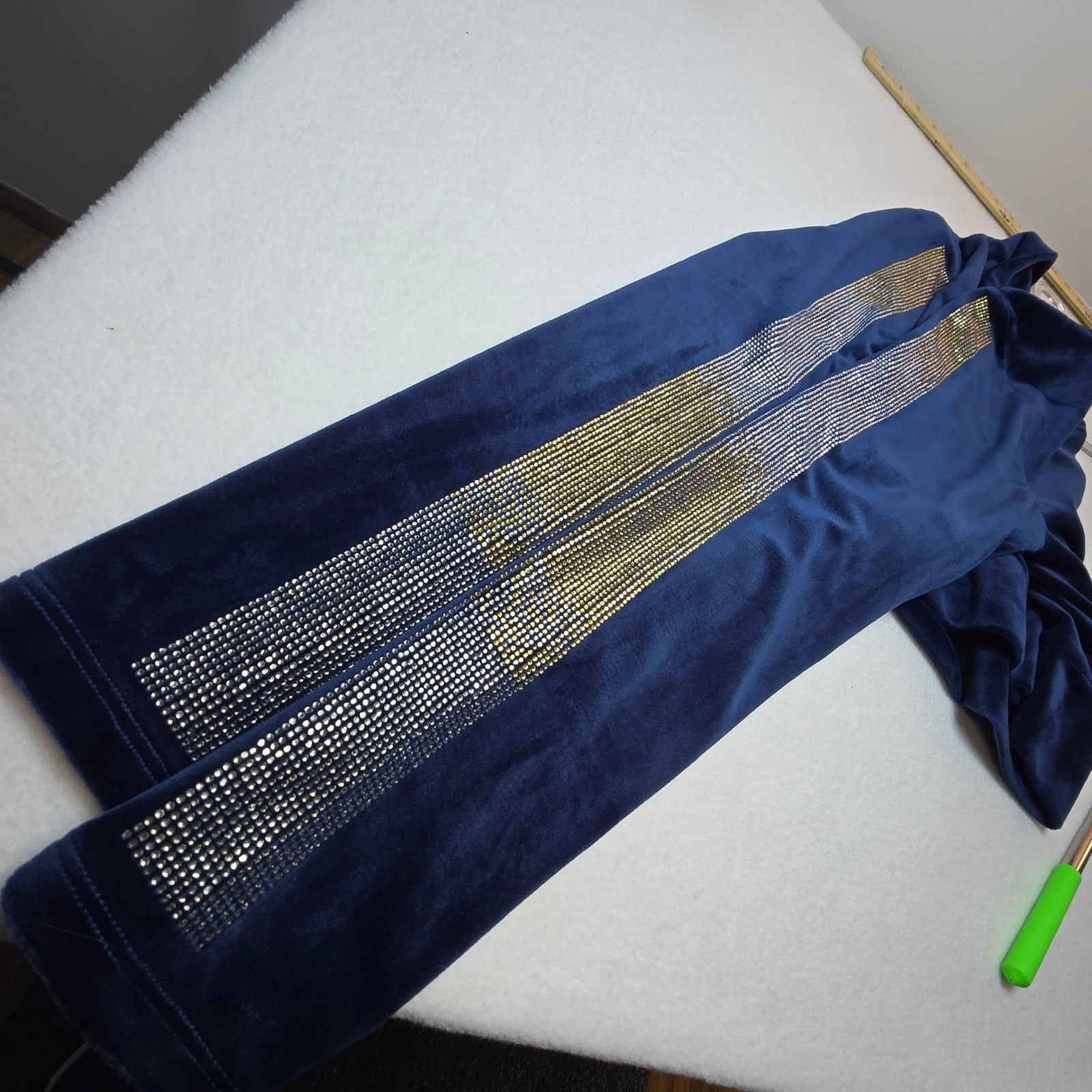 как выглядит Y2K Juicy Couture Velour Track Jacket Large Navy Blue Rhinestone Logo Full Zip фото