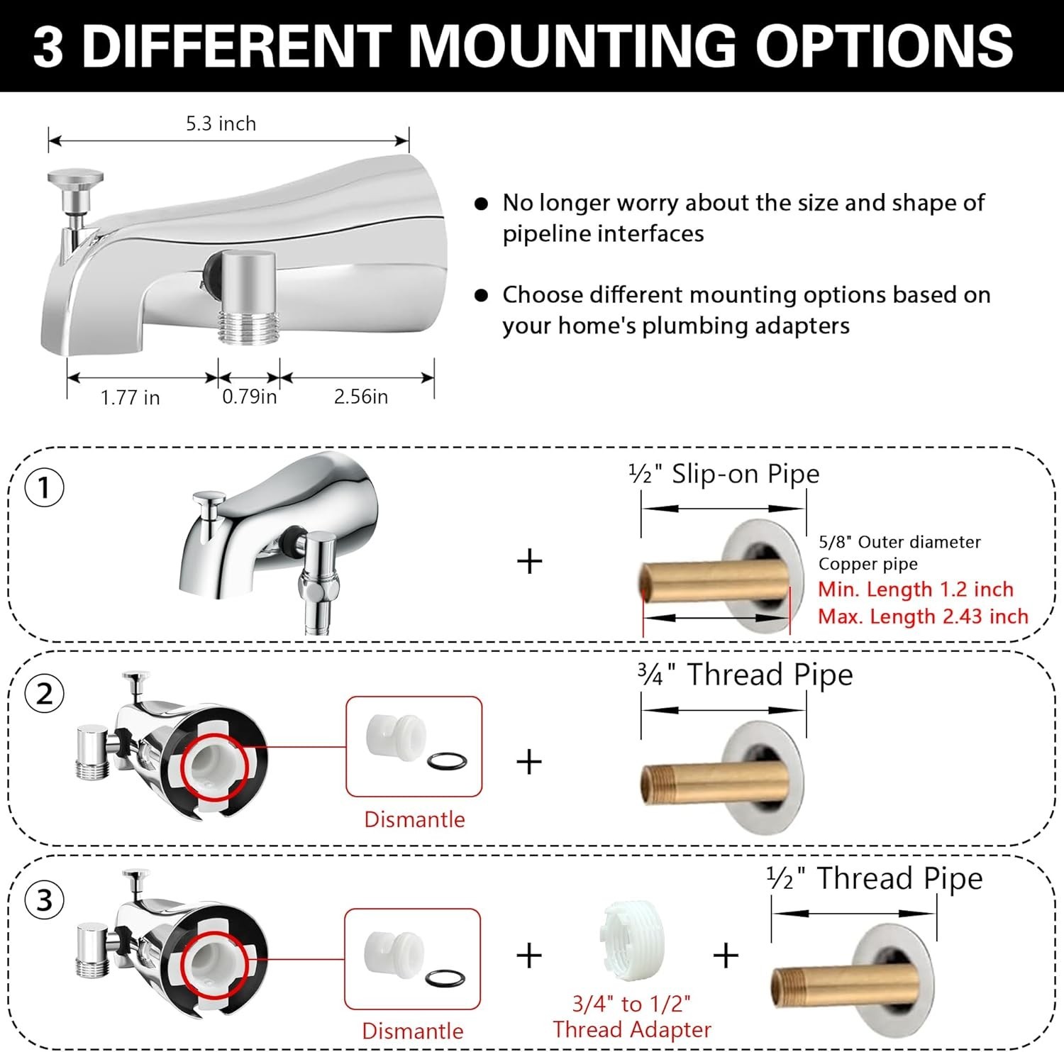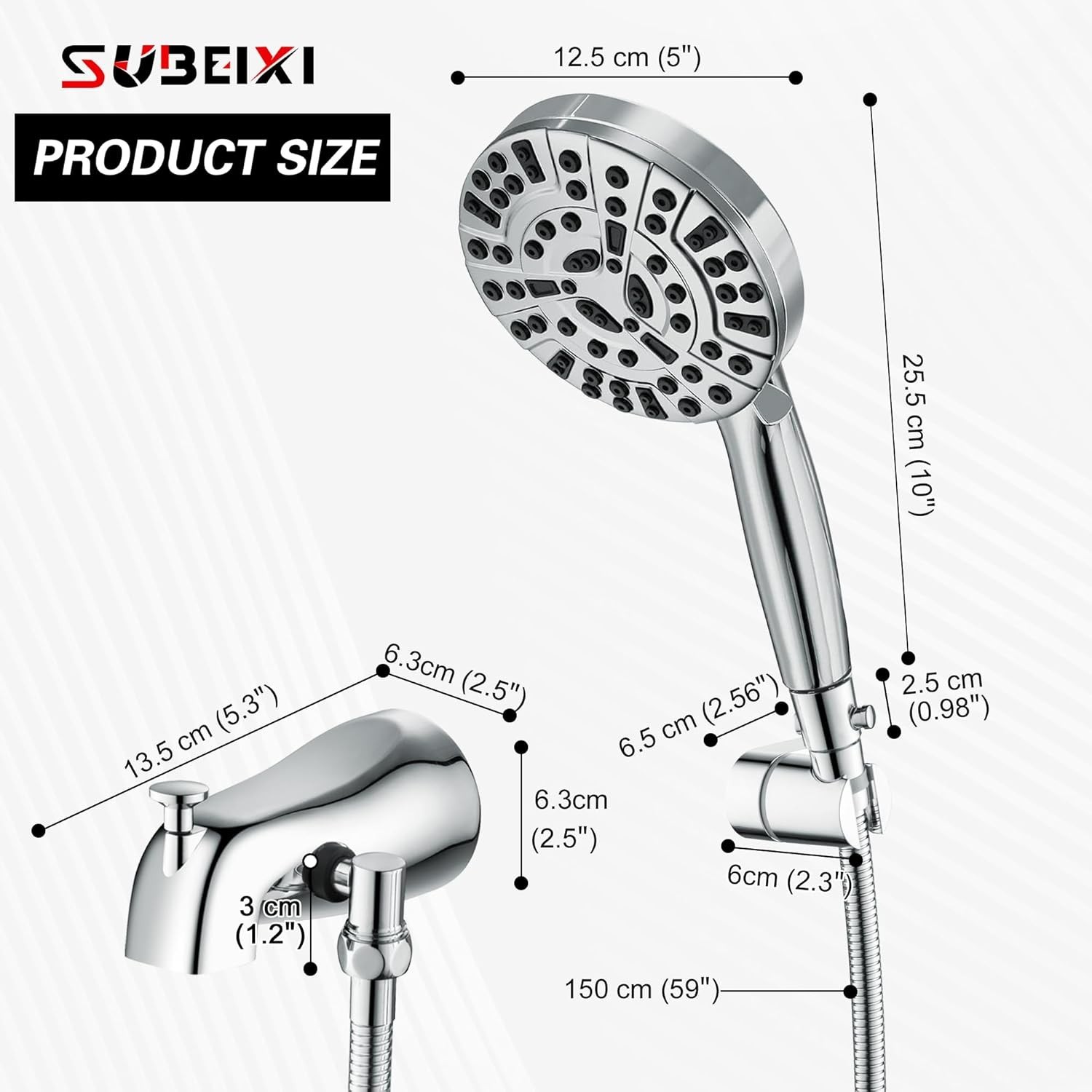 High Pressure 10 Mode Shower Sprayer Wall-Mount Tub Spout - Easy Installation