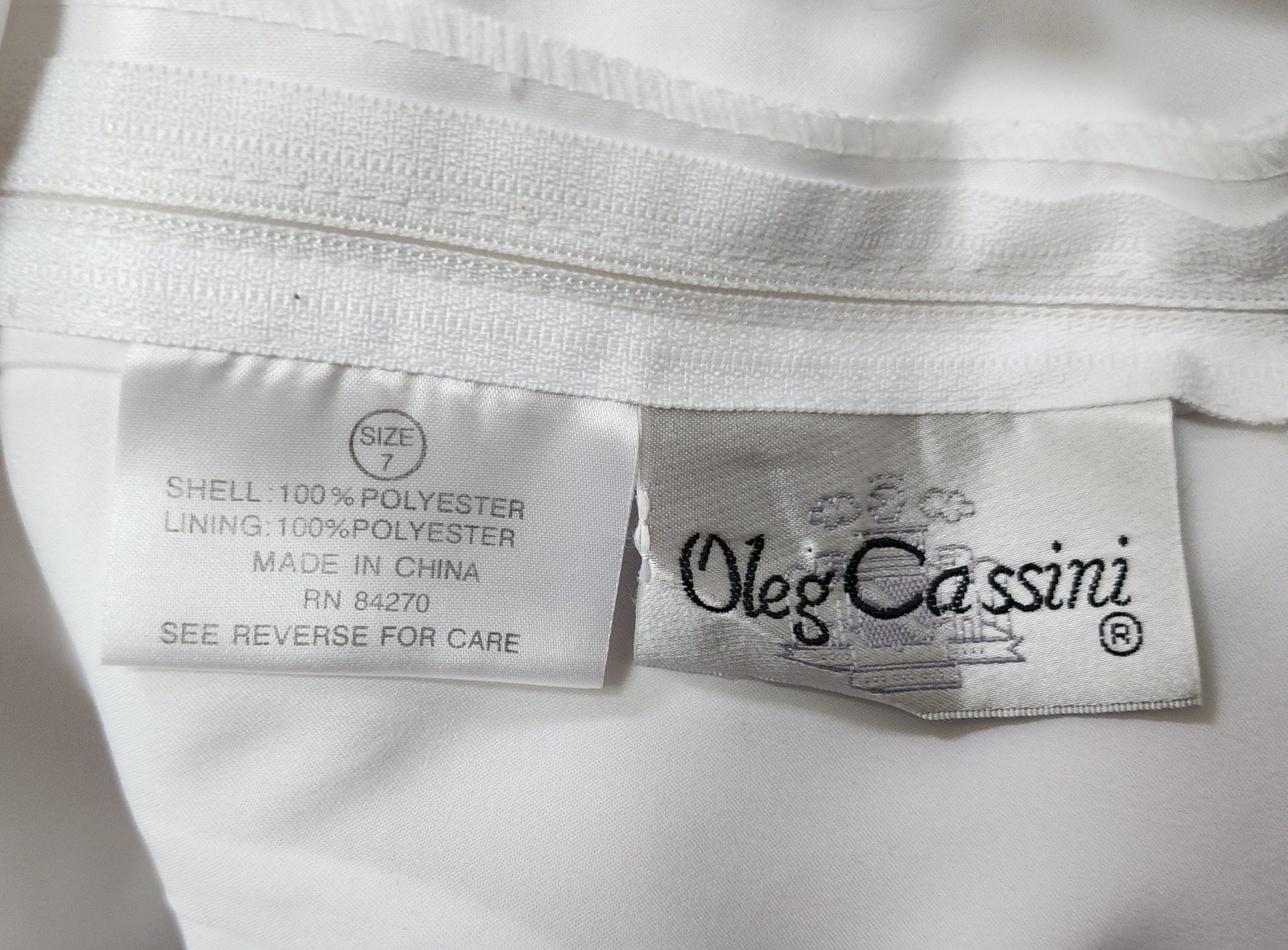 Oleg Cassini Girls 7 White Satin Beaded Dress First Communion Flower Girl Weddin