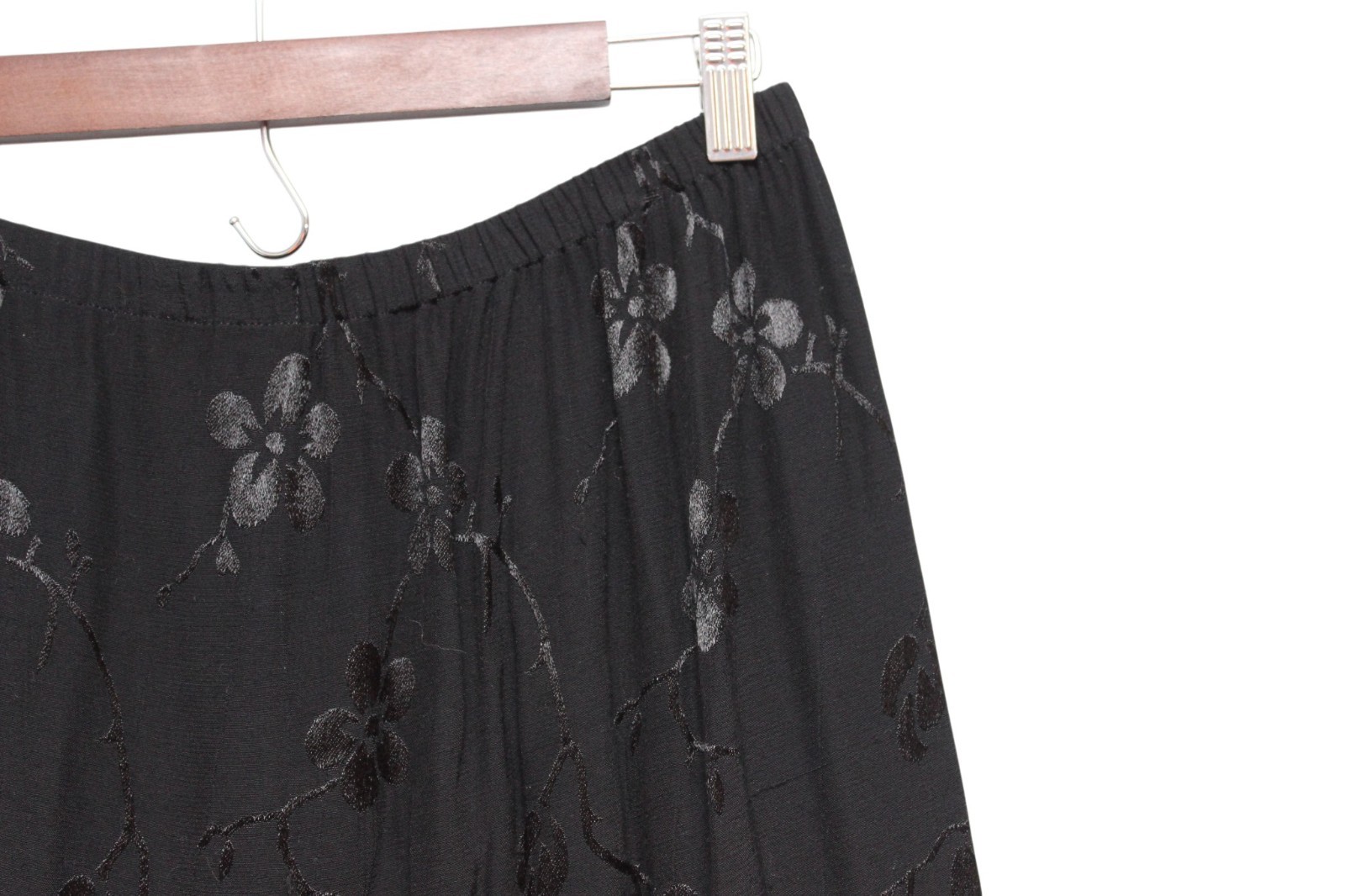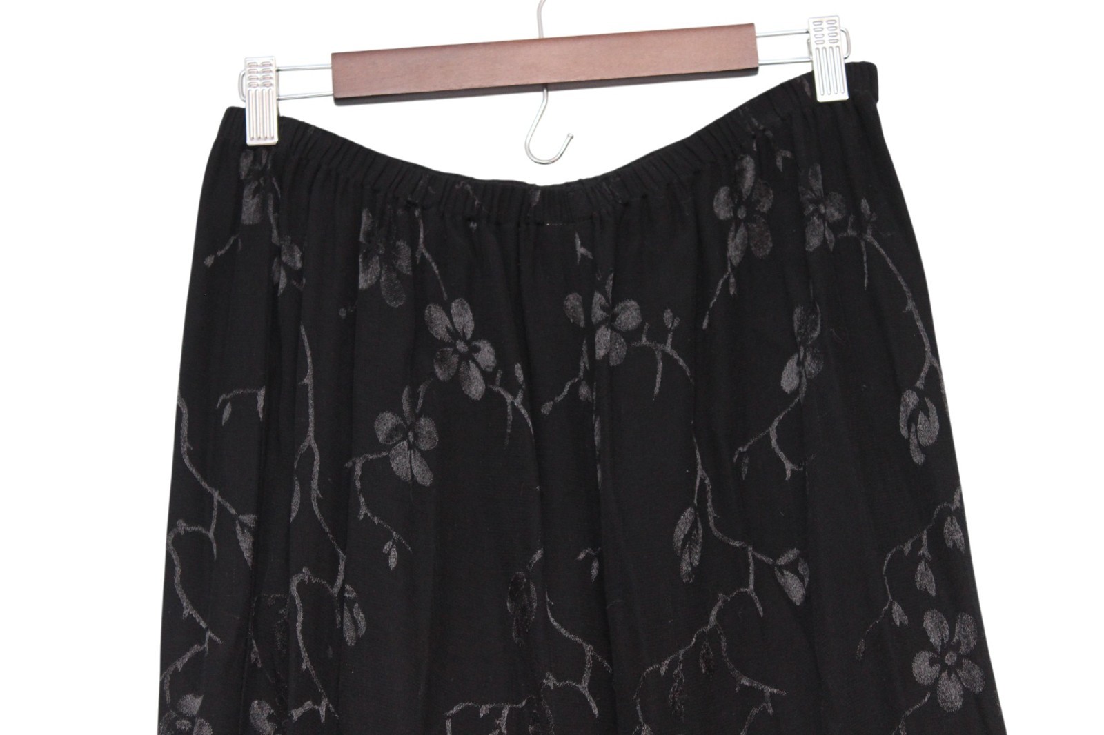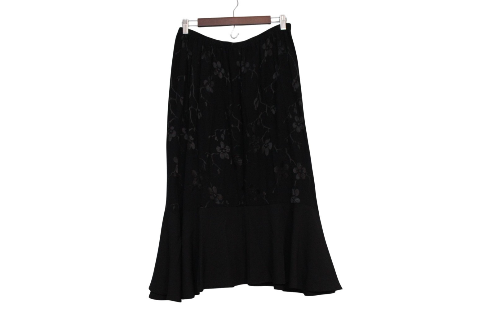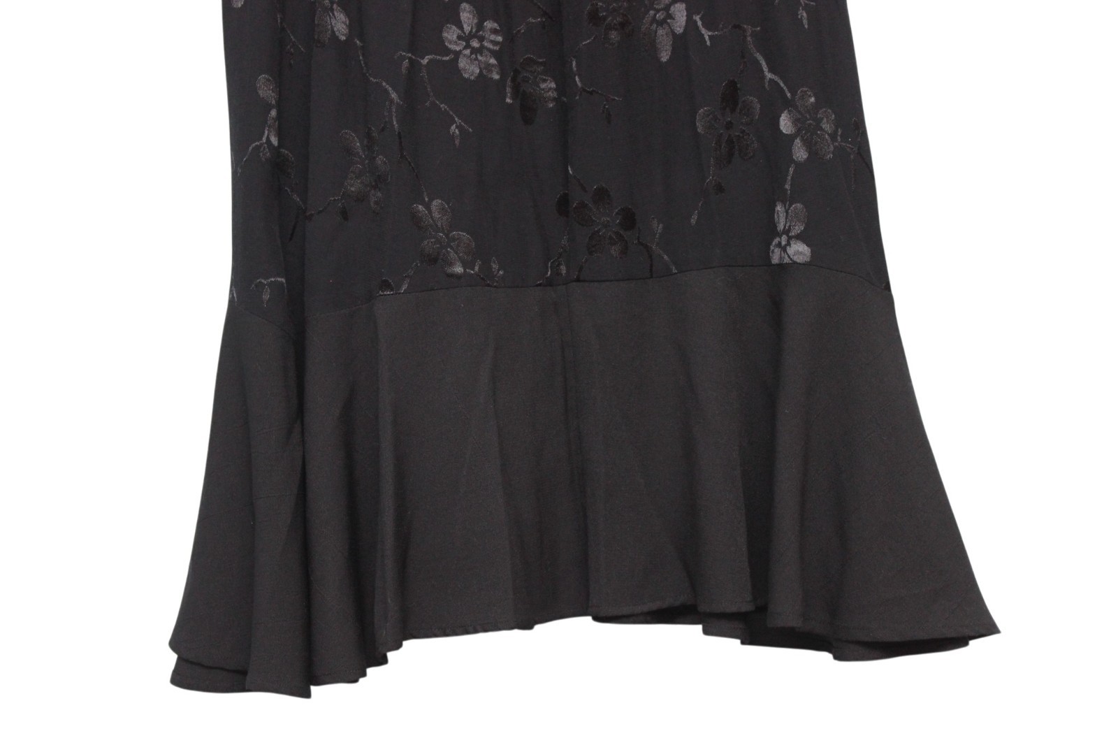 как выглядит Vintage Y2K Maxi Skirt Large Black Floral Flounce Hem Whimsigoth Grunge USA 90s фото