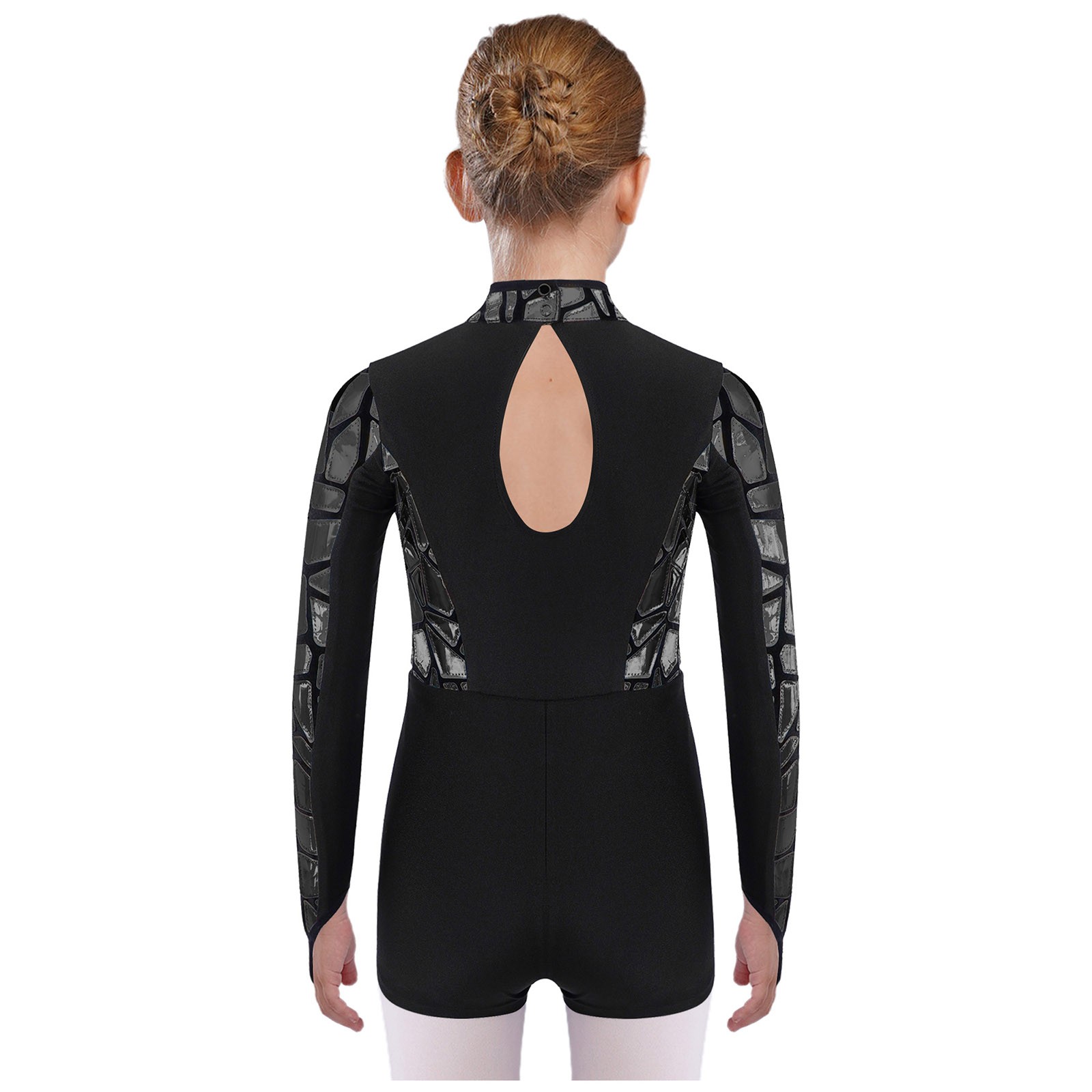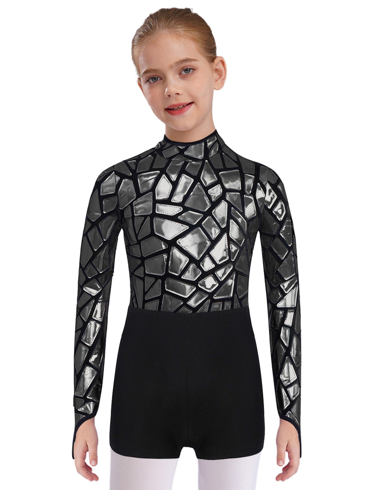Kids Girls Leotard Gymnastic Dancewear Stage Jumpsuit Costume Metallic Training