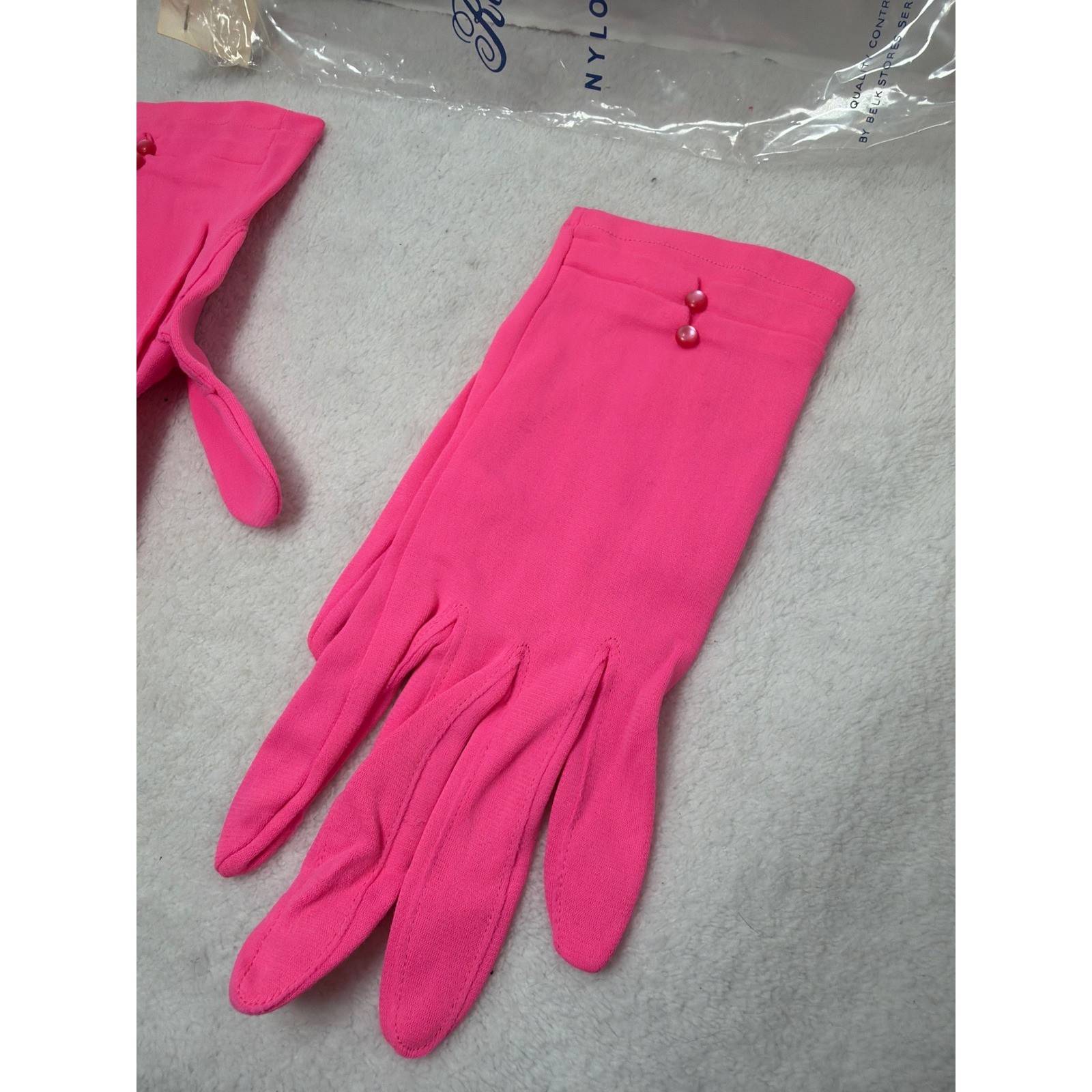 как выглядит NOS VTG 70s Reigning Beauty Gloves Womens 7 Pink Nylon Double Button Japan фото