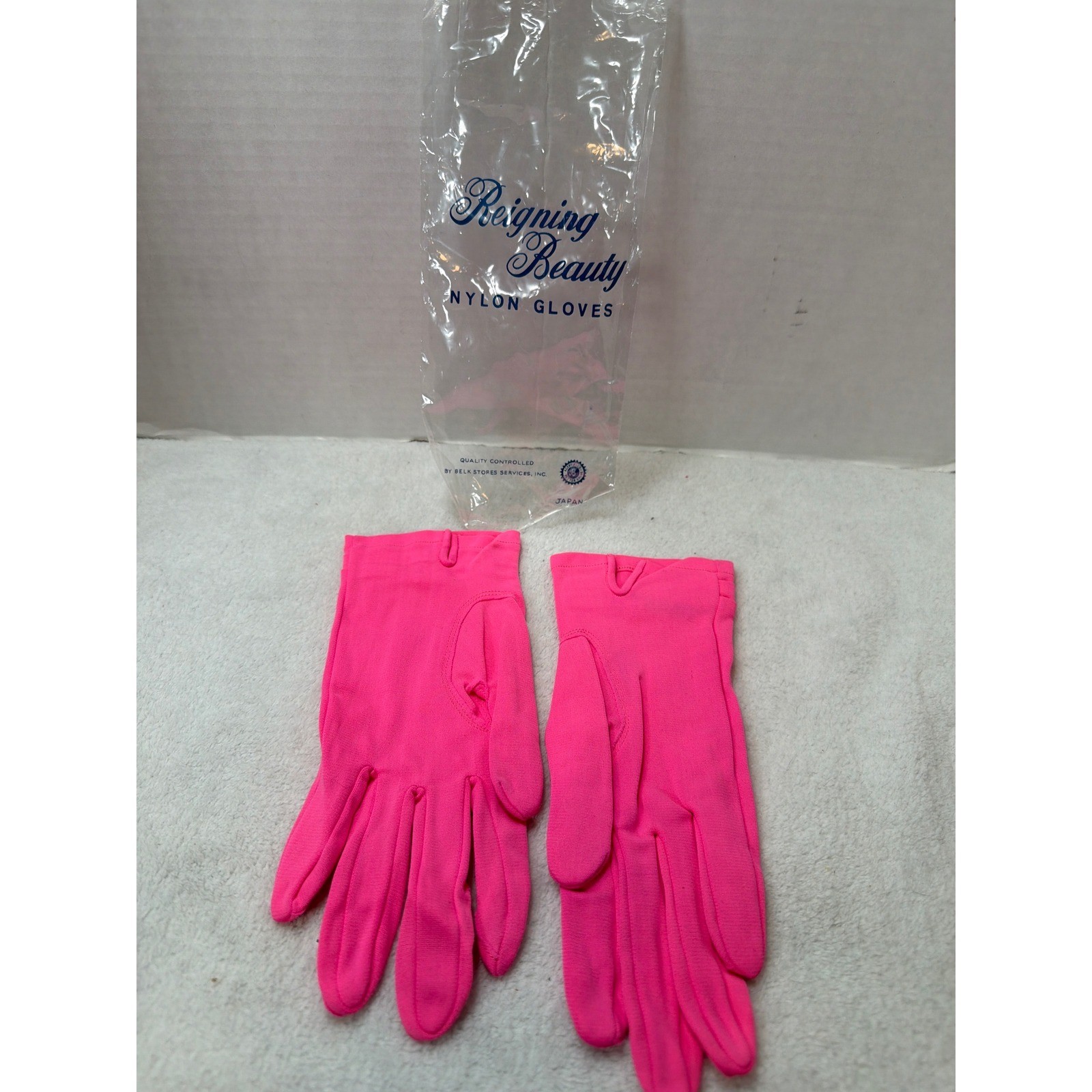 NOS VTG 70s Reigning Beauty Gloves Womens 7 Pink Nylon Double Button Japan
