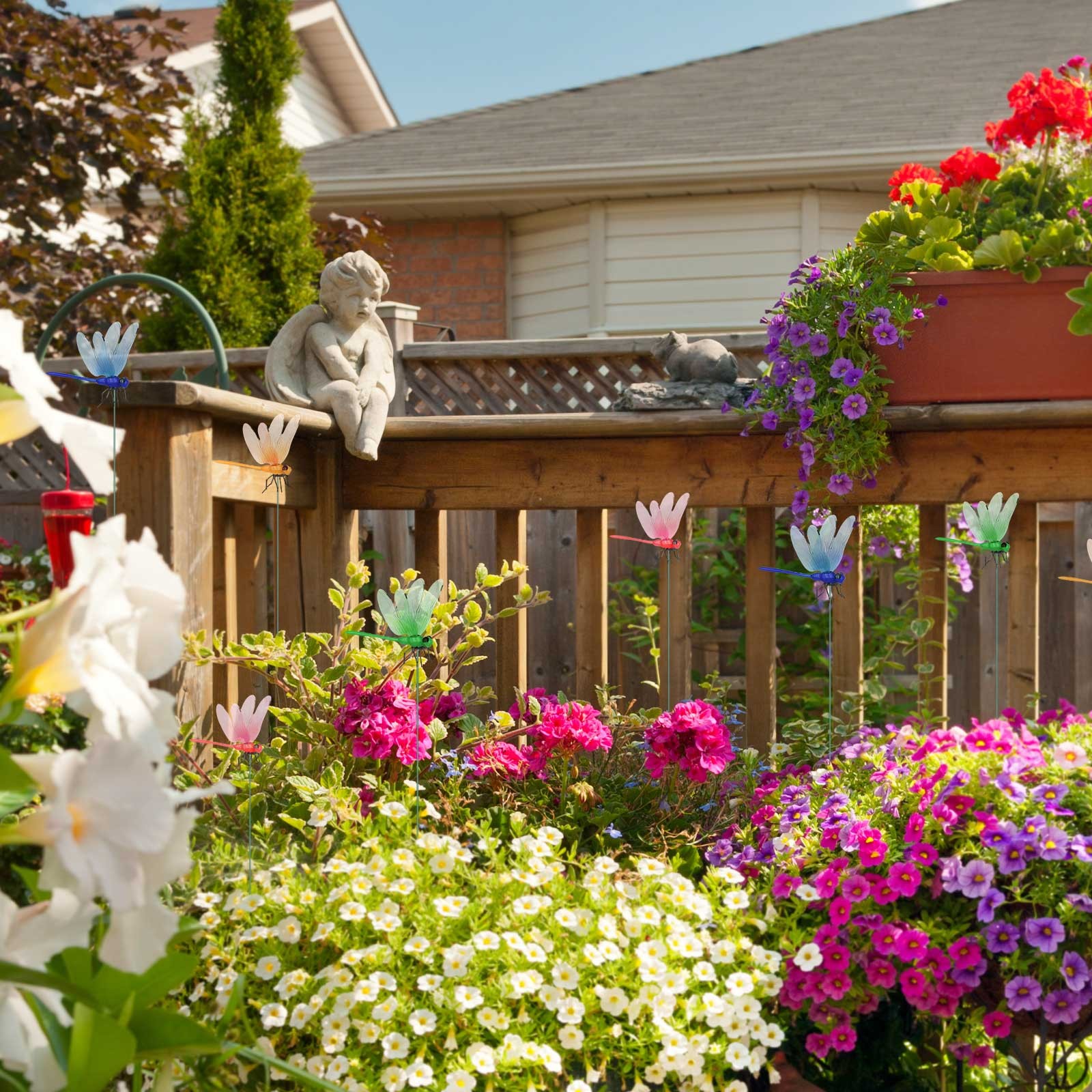 12PCS Fake Dragonfly Rod Clips 3D Outdoor Garden Decor Bug Repellent Waterproof