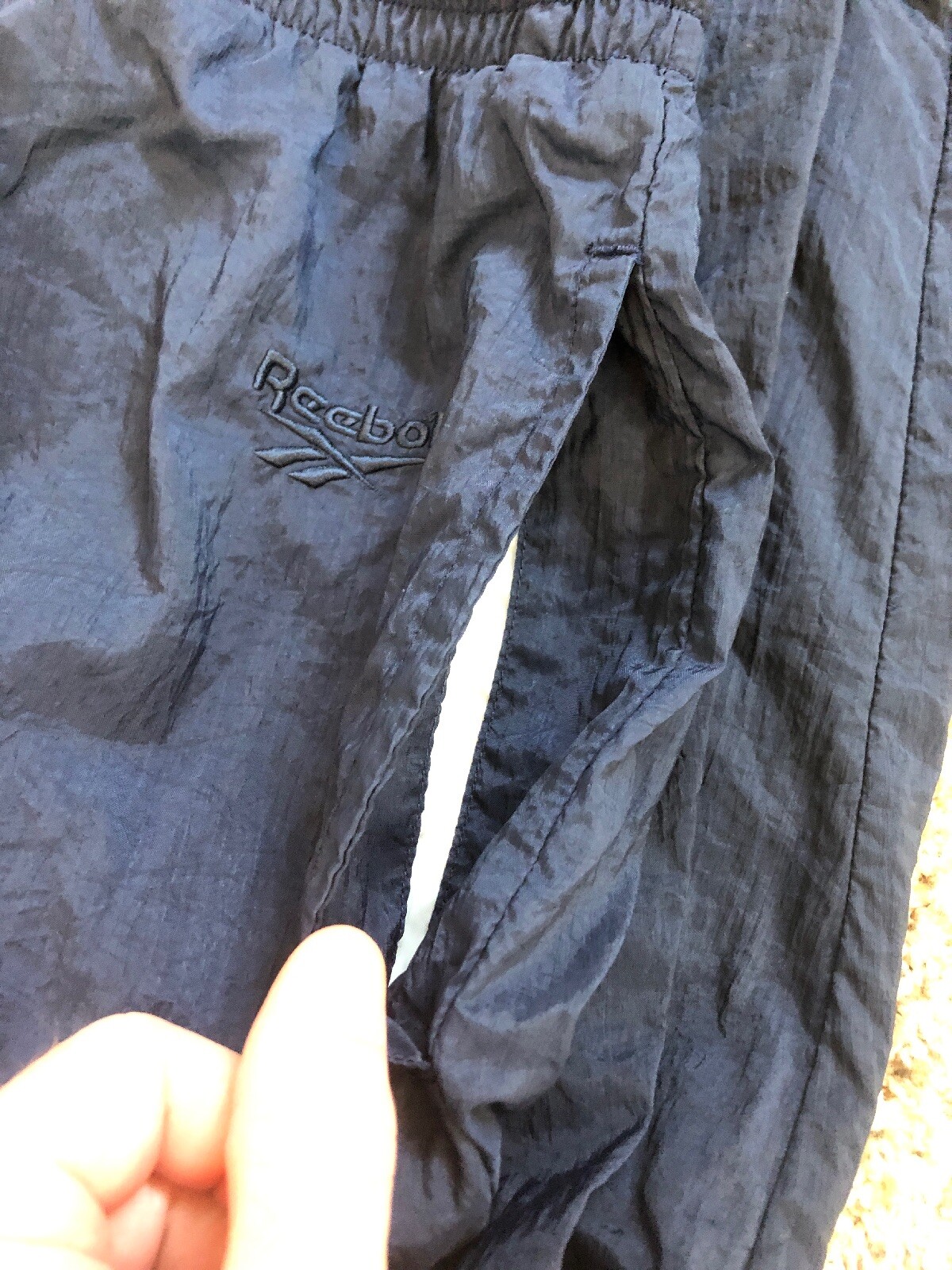 как выглядит Vintage 80s Reebok Windbreaker Exercise Pants Navy Blue Thailand Size Large фото