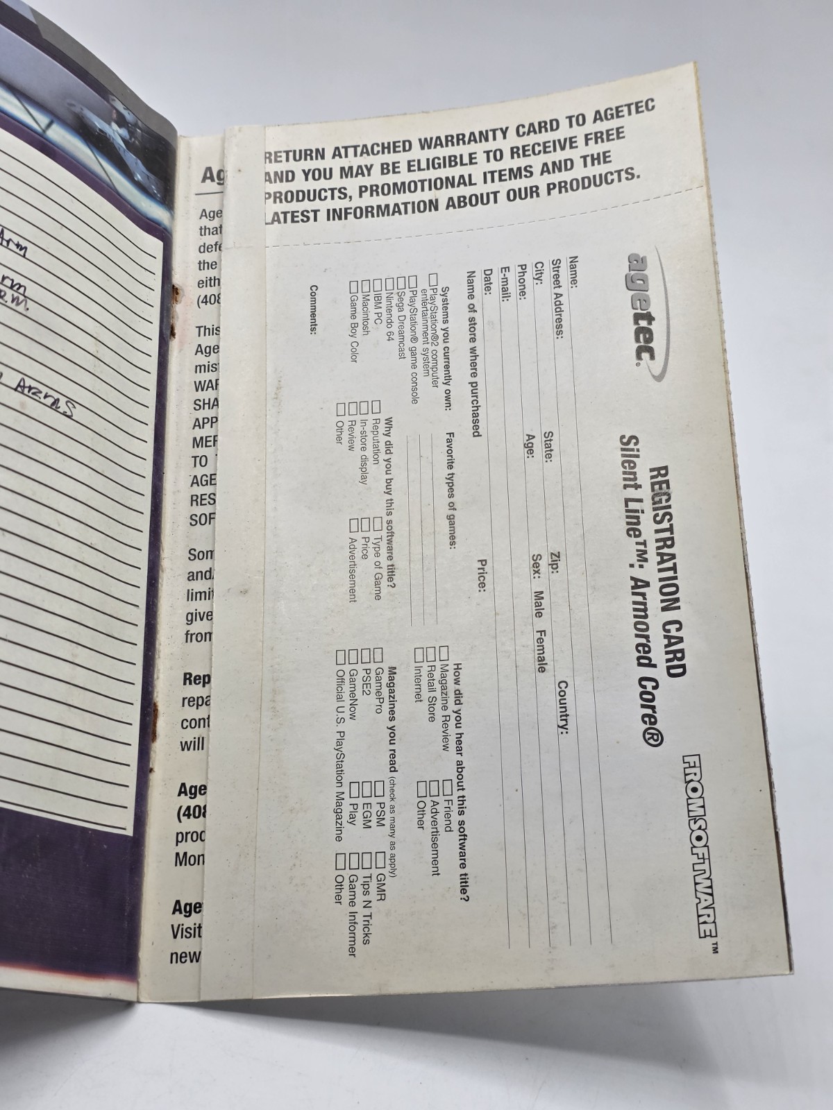 Manual Only Silent Line Armored Core Sony PlayStation 2 Ps2 w/ Registration