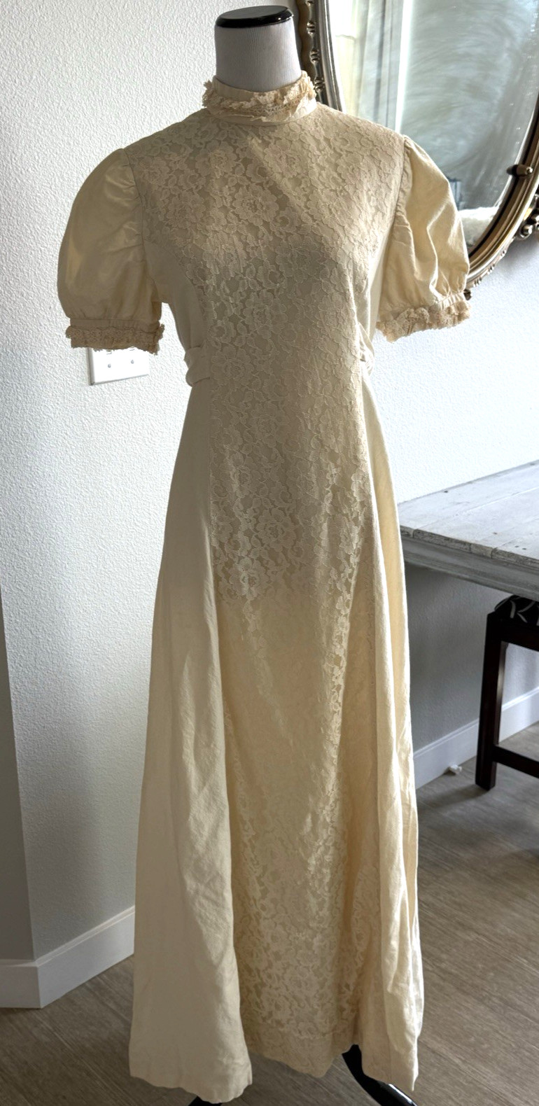 Vintage Cottagecore Wedding Dress Size 6 IVORY Muslin Lace Romantic Bridal