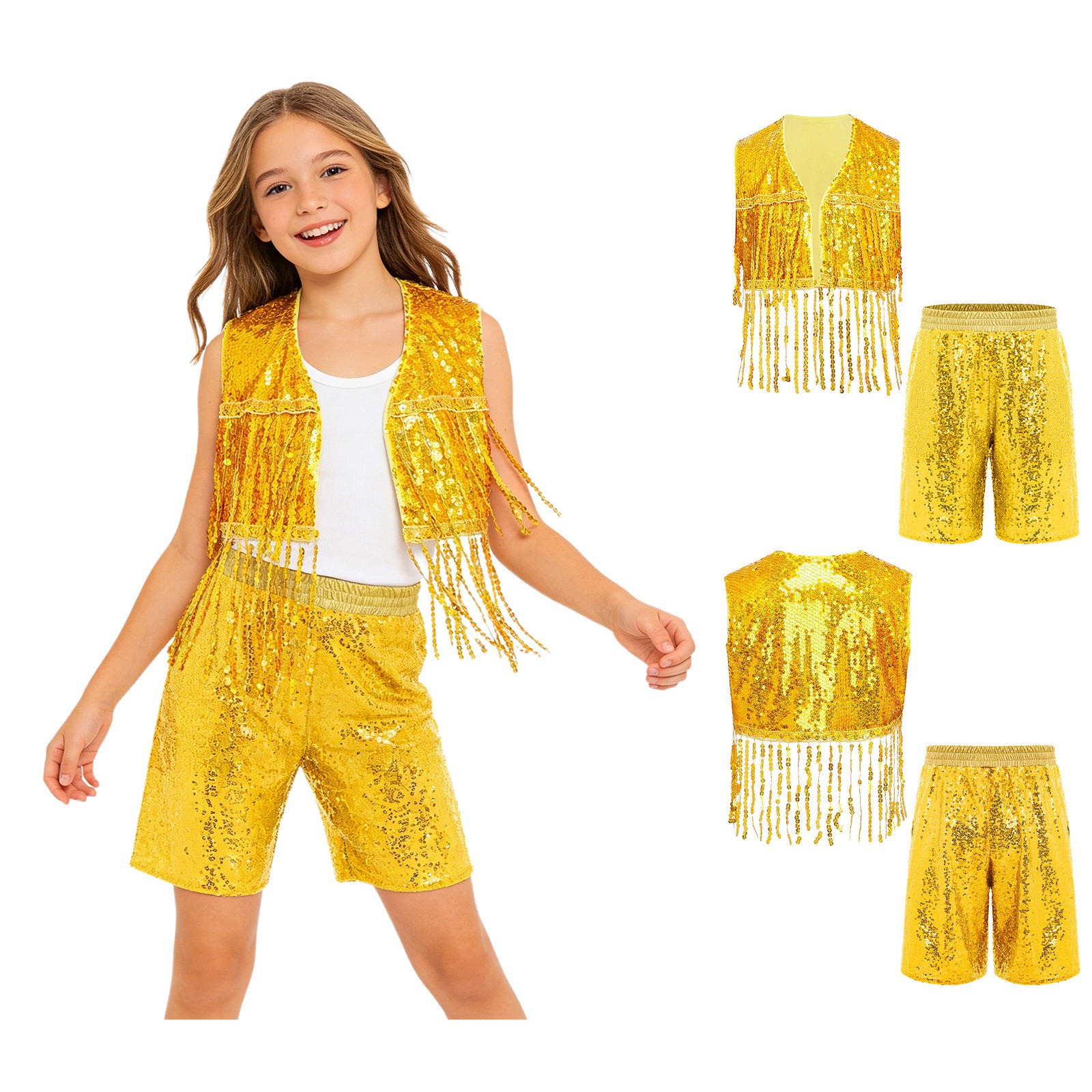 Kids Shorts Set Fringe Sequin Vest Tassel Jazz Dance Boys Outfits Costume Salsa