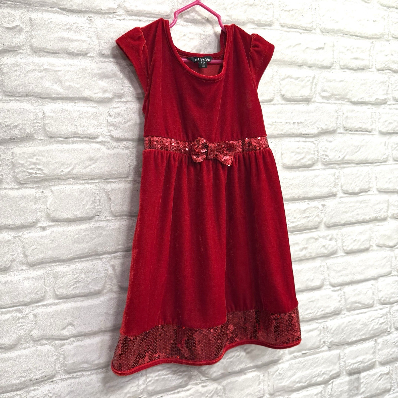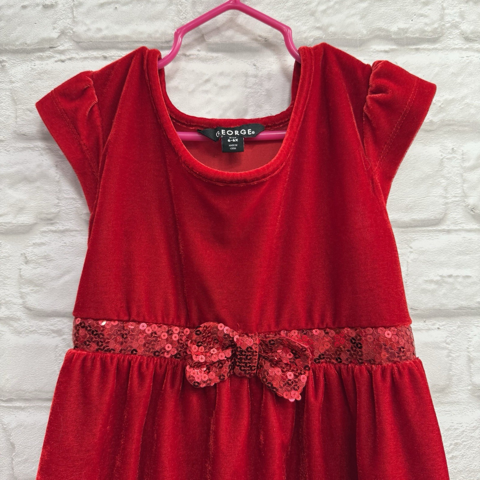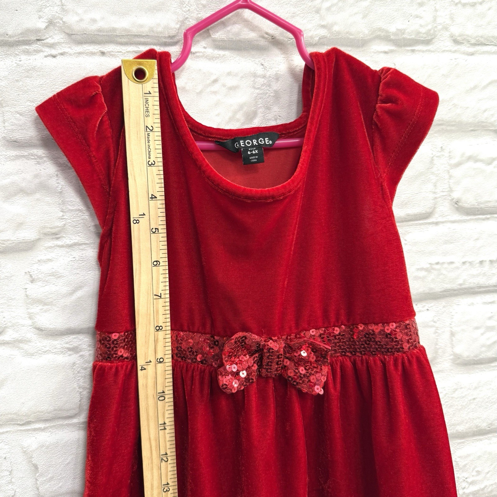 George Girls Size 6/6 Red Velvet Sequin Christmas Holiday Dress Formal w/ Bow