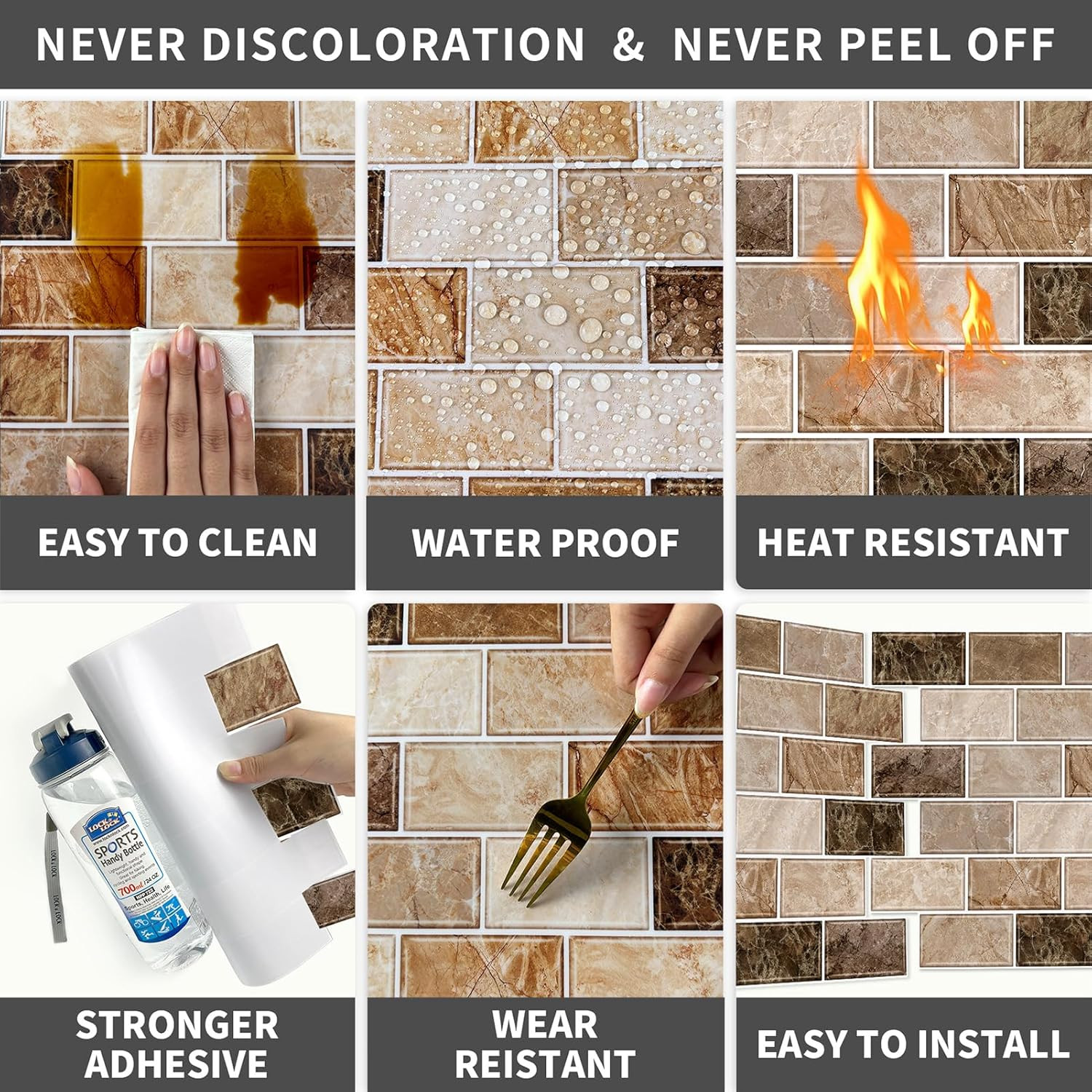 10 Sheet Peel and Stick Backsplash Subway Tile for Kitchen 12 X12 Self Adhesive
