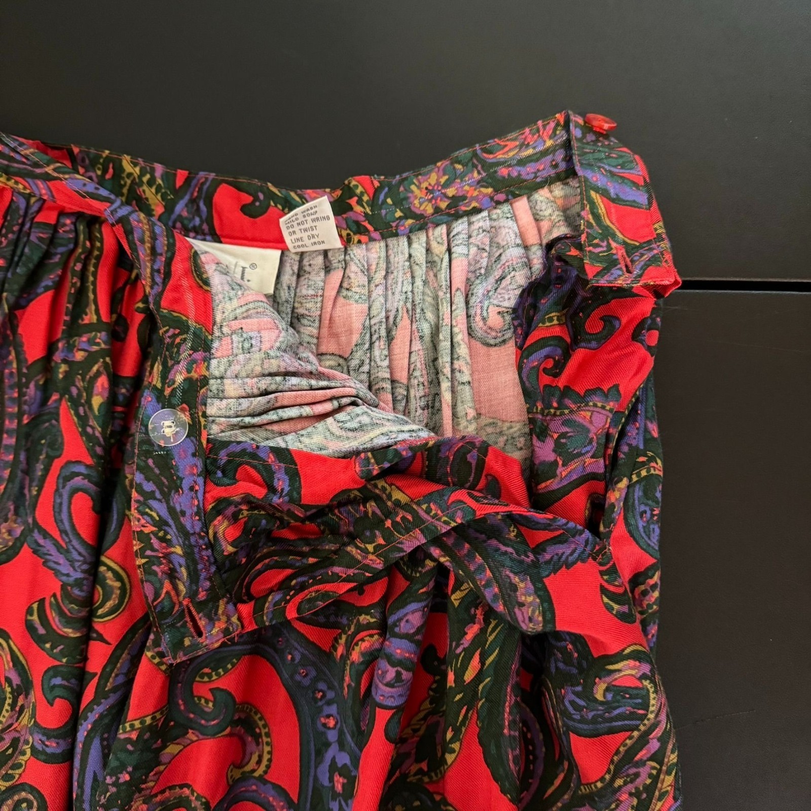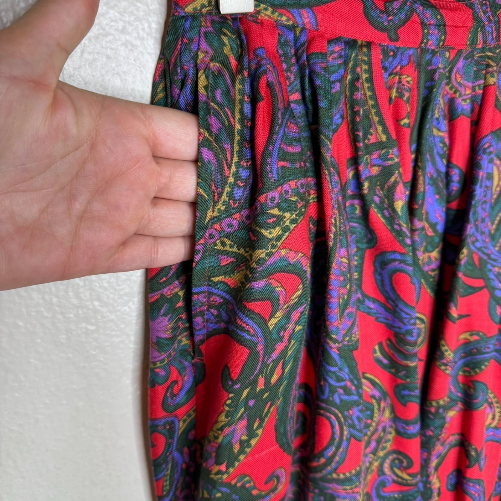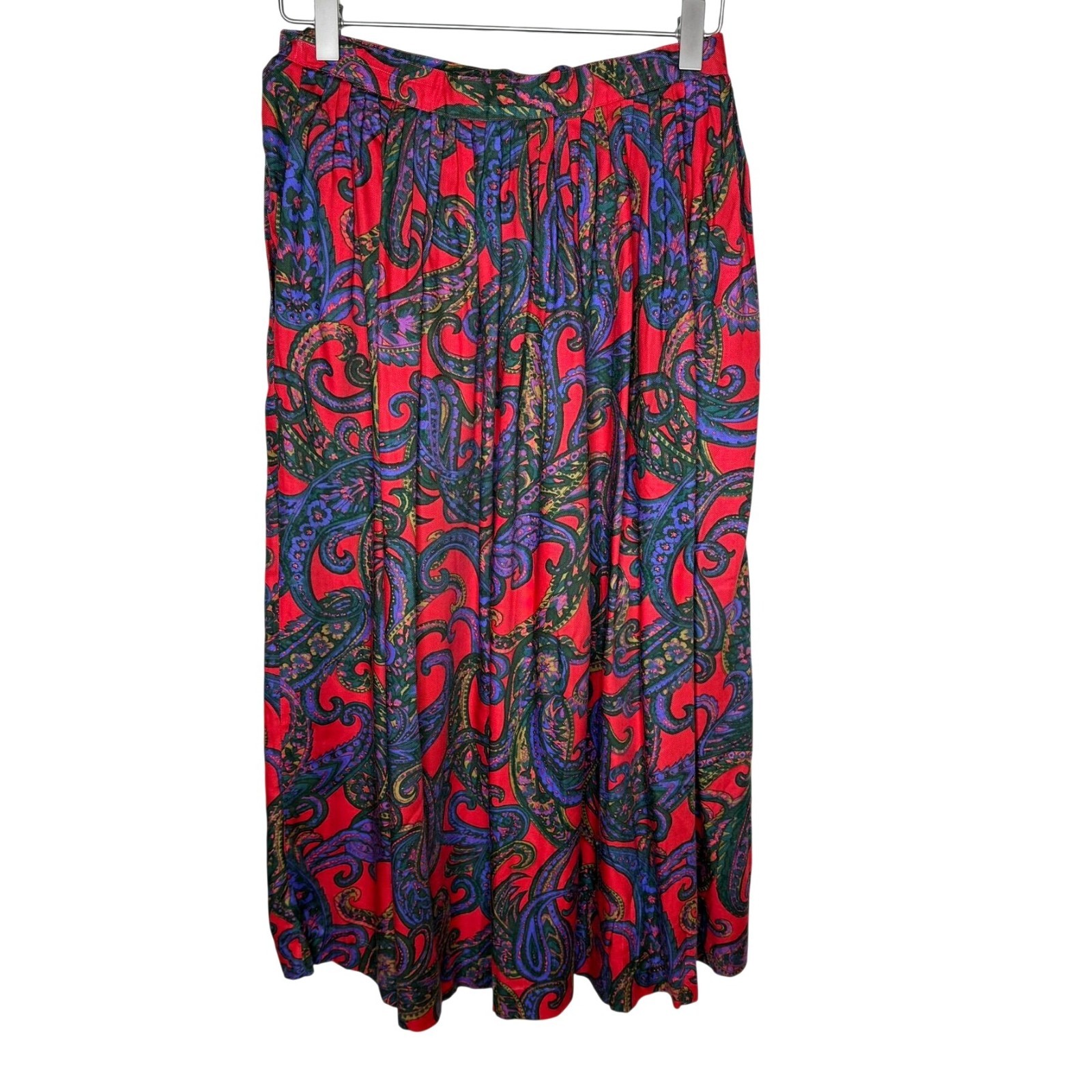 как выглядит Vintage 70s 80s Red Paisley Pleated Midi-Length Skirt, Size 6 фото