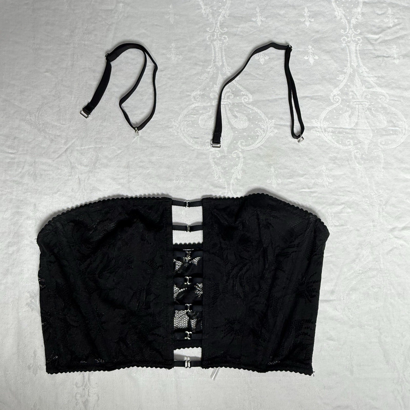 Victoria's Secret Size M Black Lace Bustier Corset Bra Removable Straps Side Zip
