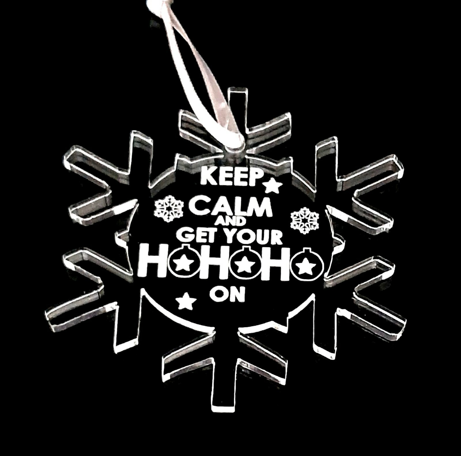 Snowflake Keep Calm Get Your Ho ho On Engraved Christmas Tree Decoration