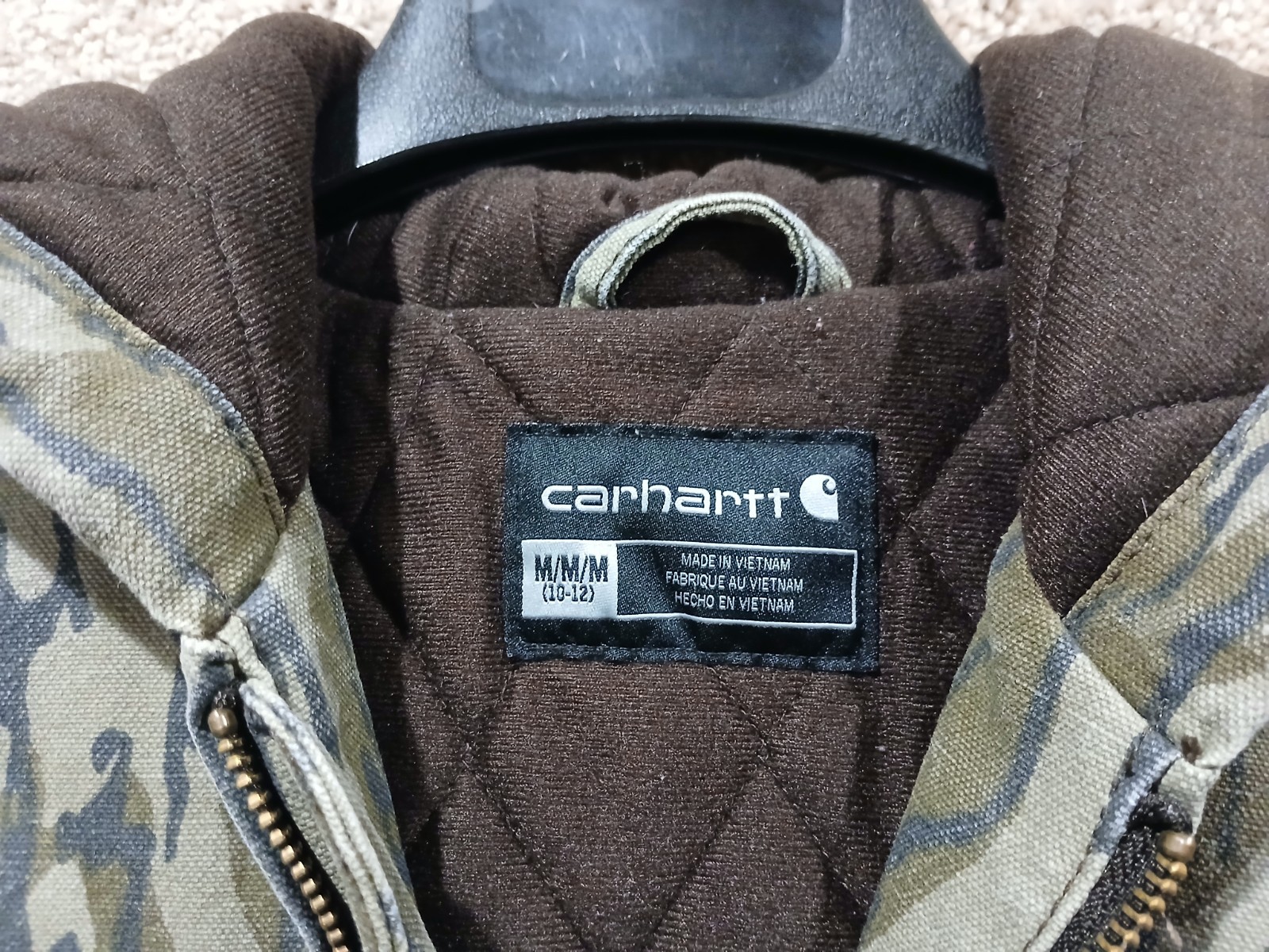 как выглядит Carhartt Jacket Youth Medium 10-12 Camouflaged Realtree Quilted w/ Hood Camo фото