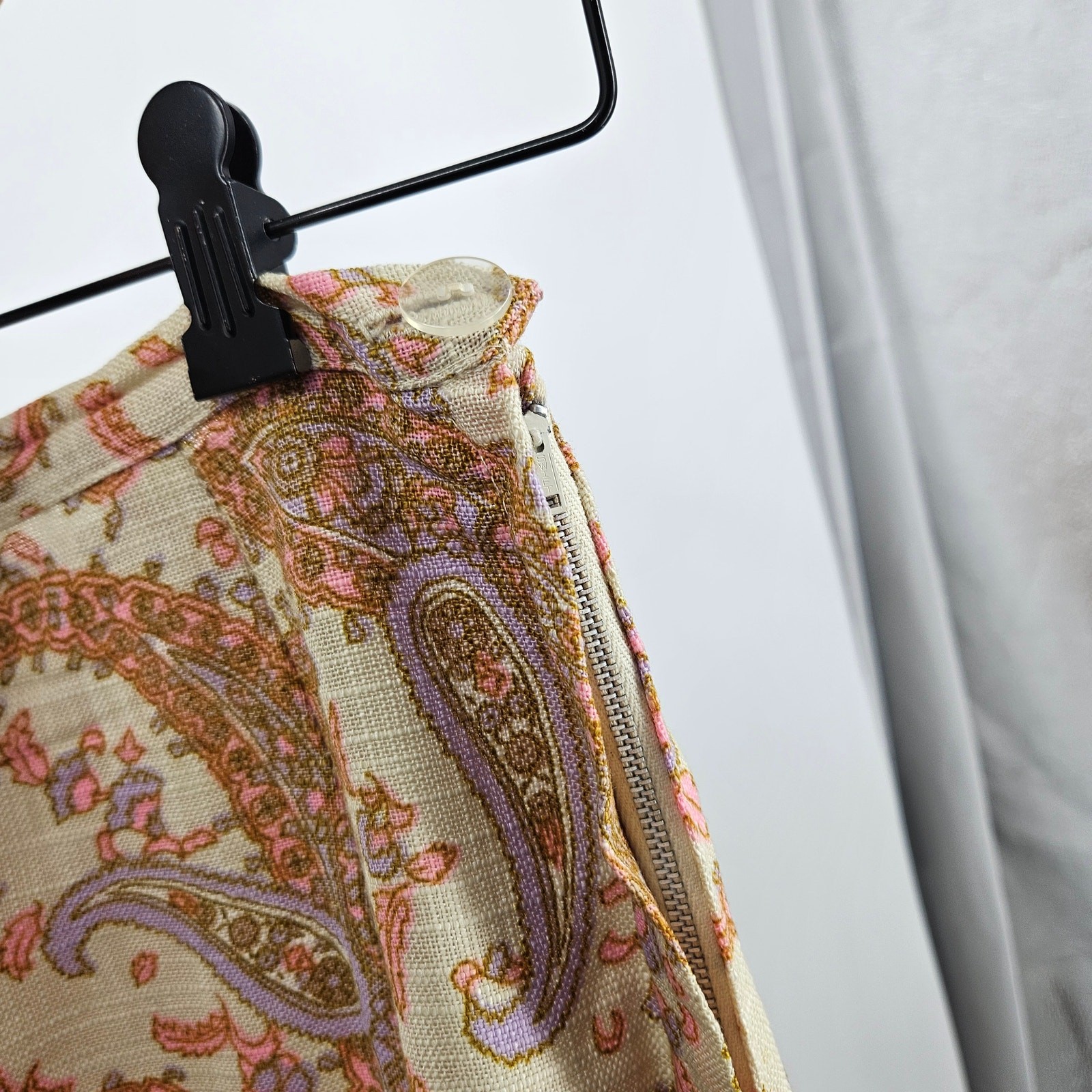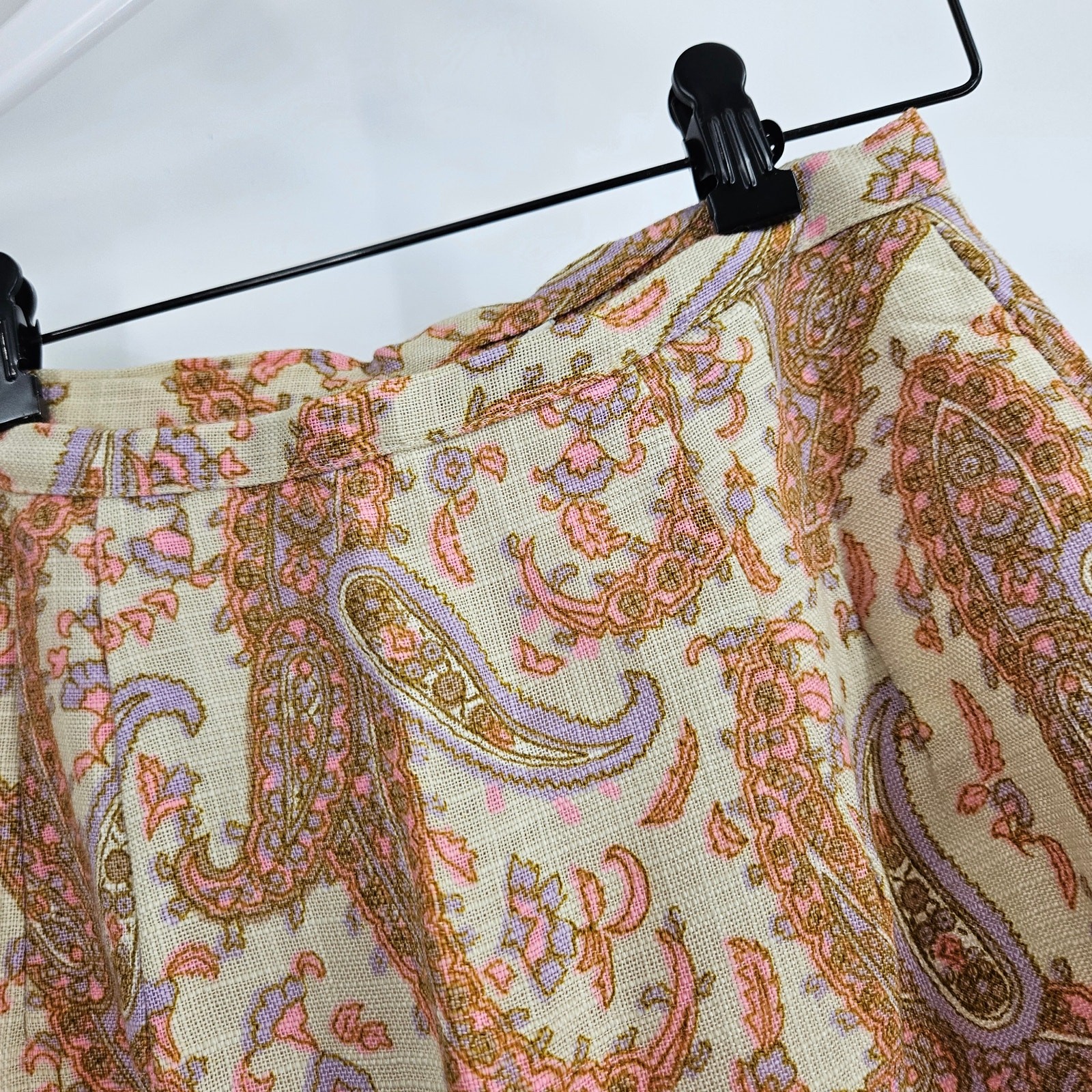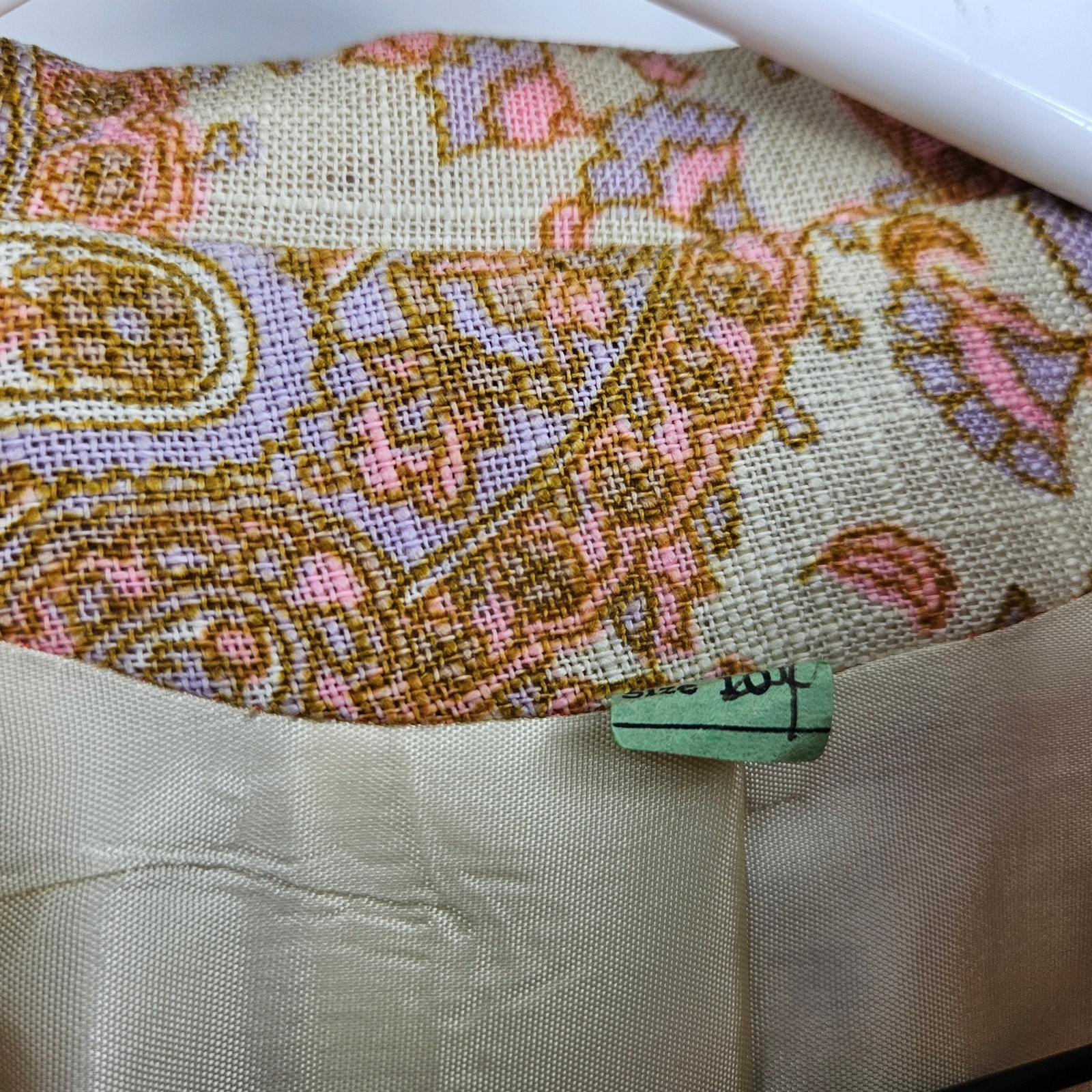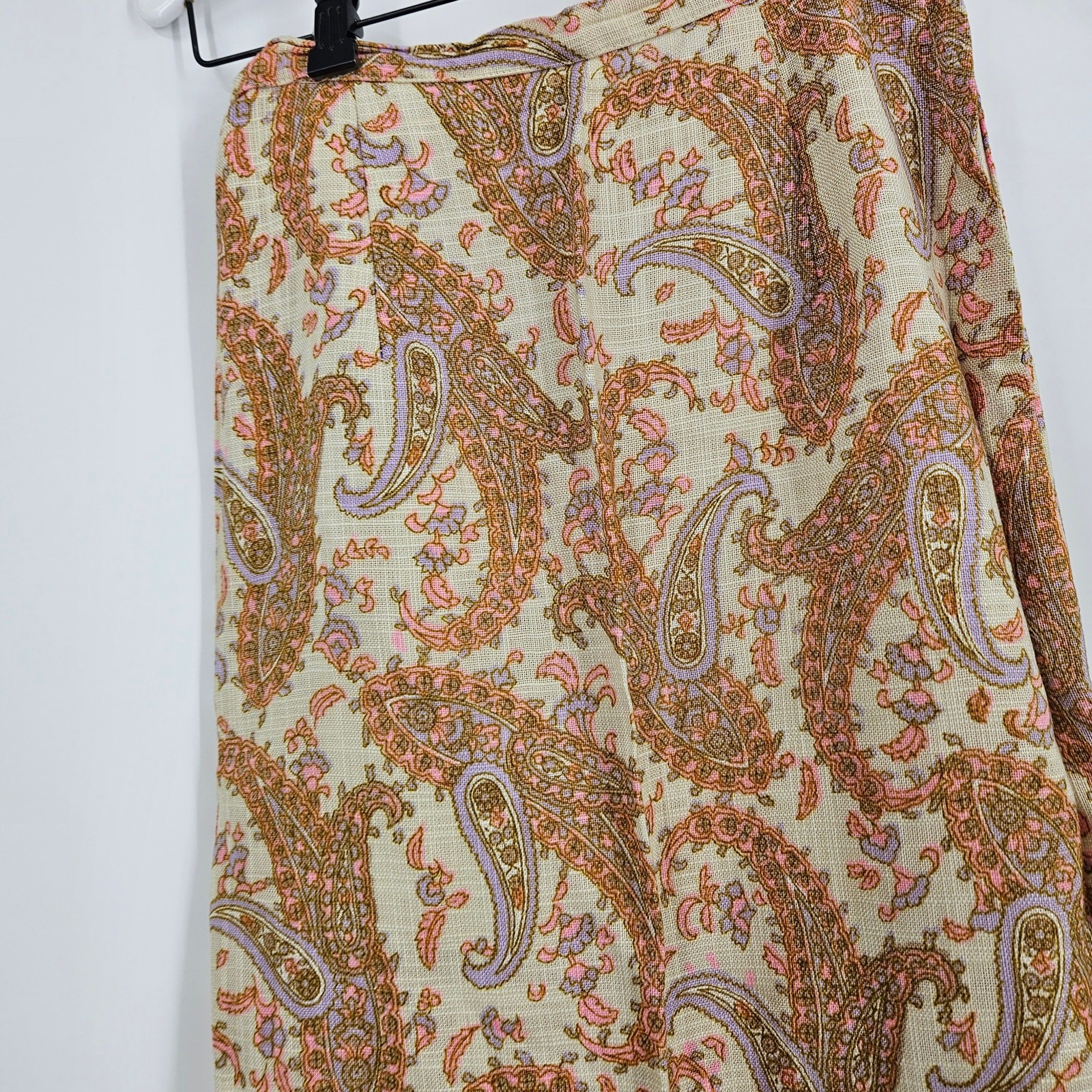 Vitange 70s Skirt Set Brown Button Down Long Sleeve Paisley Mod Secretary Sz 10