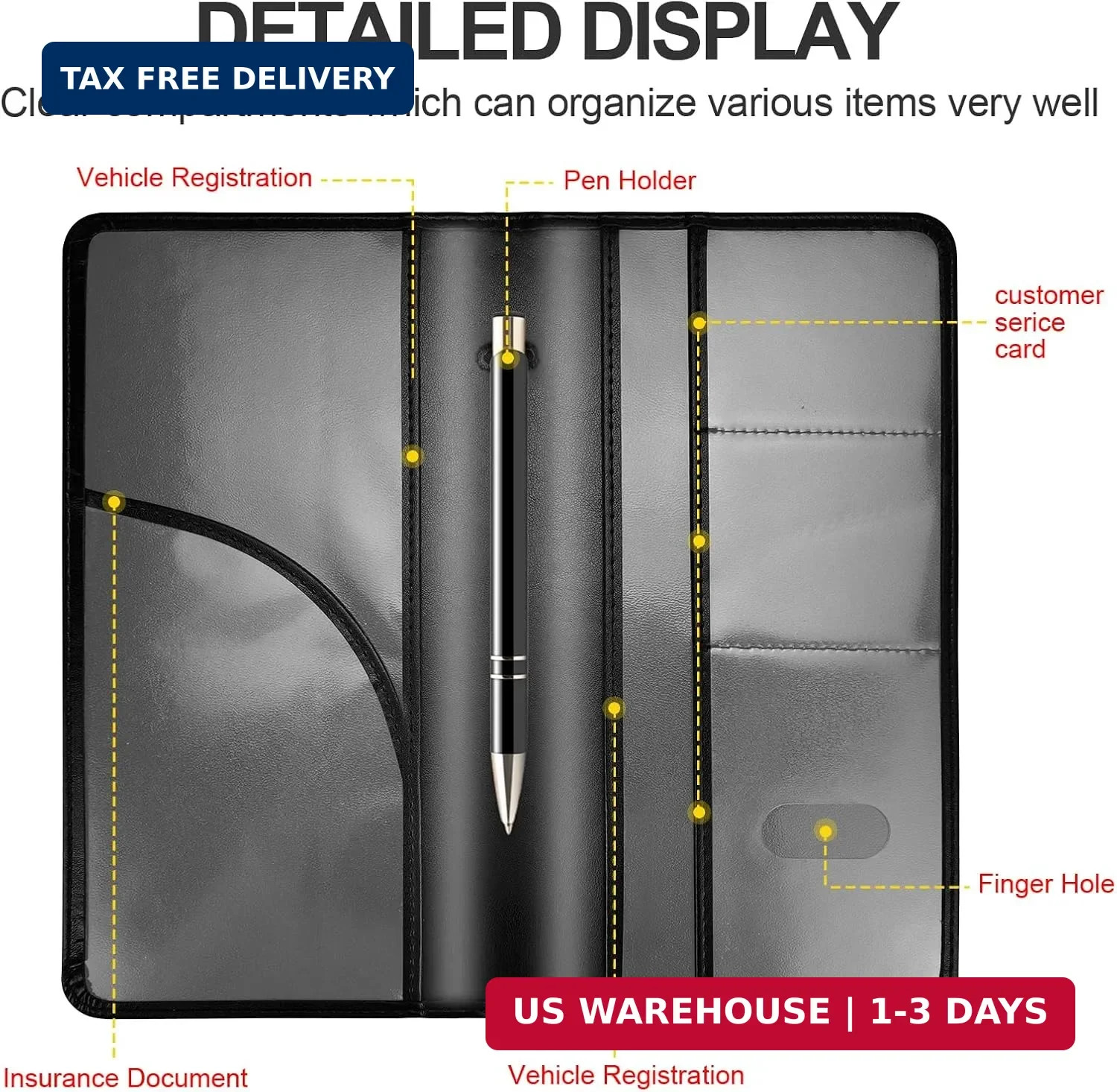 Car Registration and Insurance Card Holder, Leather License Document Black Glove