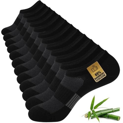 No Show Socks Men, Rayon from Bamboo Low Cut Thin Ankle 10-13 Black 6 Pairs
