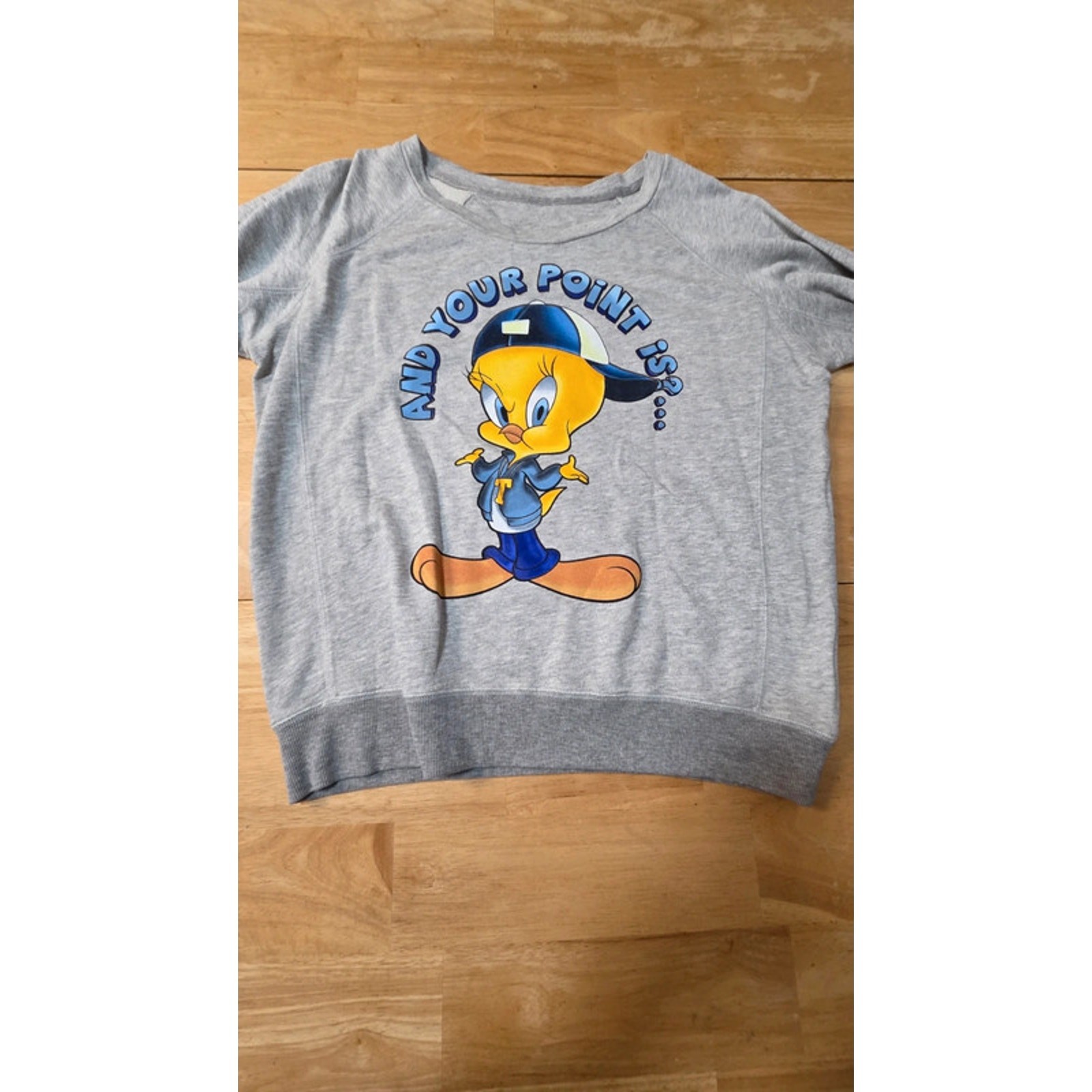Looney Tunes Tweety Bird Sweatshirt Gray Graphic Pullover Large NWOT Womens