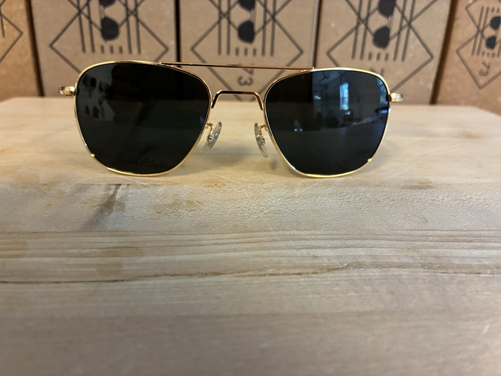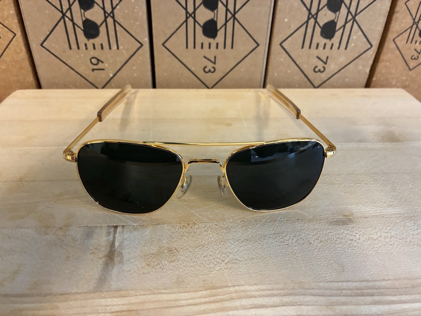 как выглядит Randolph Engineering Aviator Gold 5 1/2 AF 52 20 NOS Gray Glass Lenses фото