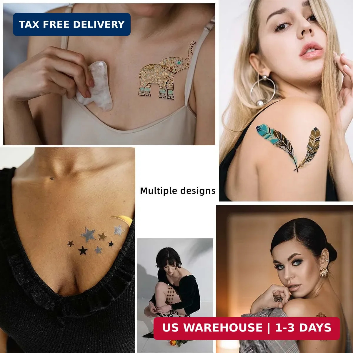 12 Sheets Flash Gold Metallic Temporary Tattoos for Women Girls Waterproof Gold