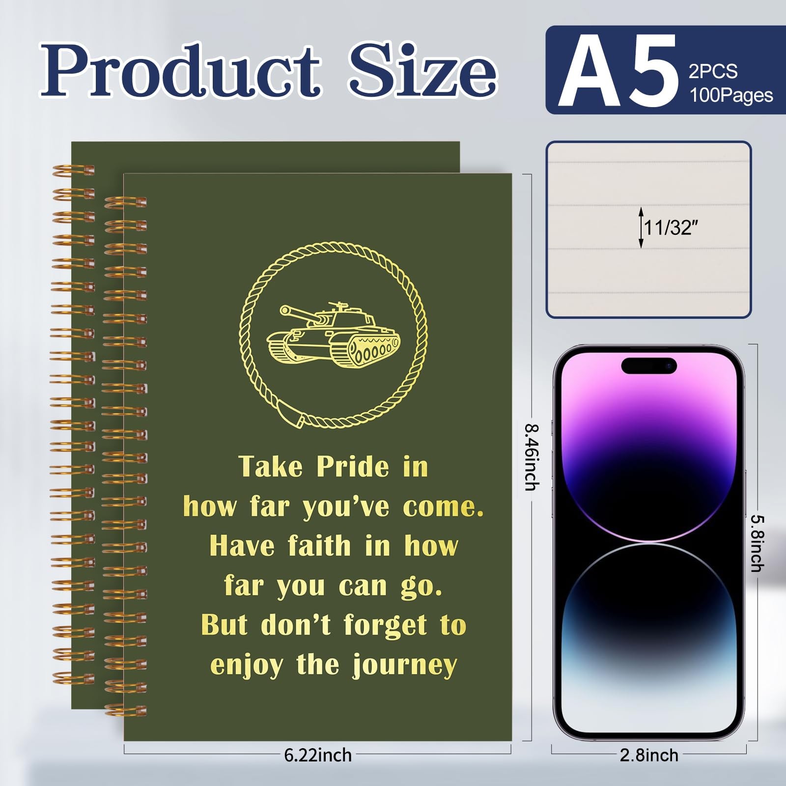 2Pcs A5 Spiral Journal Notebook Hardcover 100 Pages College Ruled Army Gift