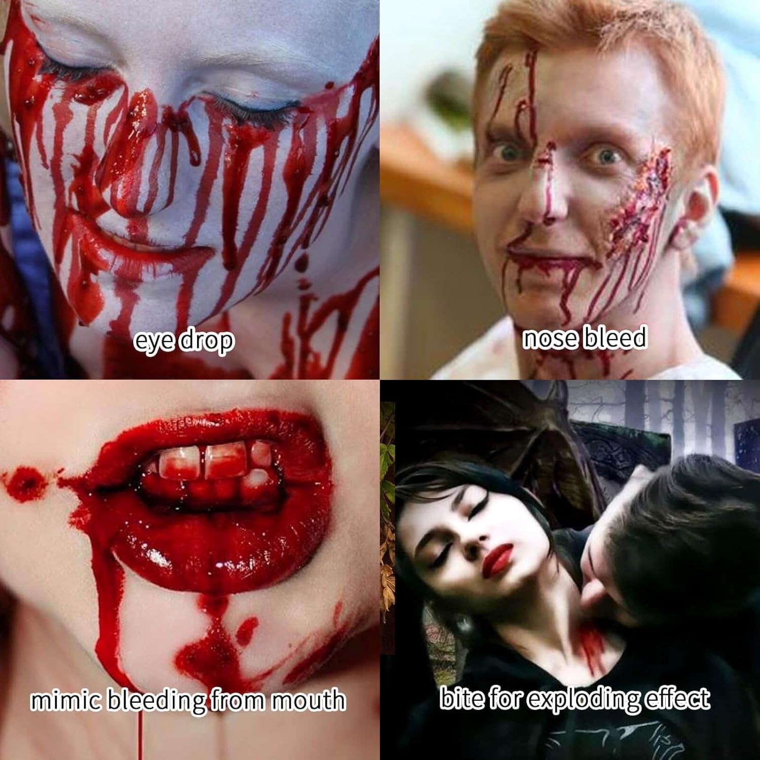 0.5OZ Edible Fake Blood with 6 Packs Empty Capsules,Washable Stage Blood Sangre