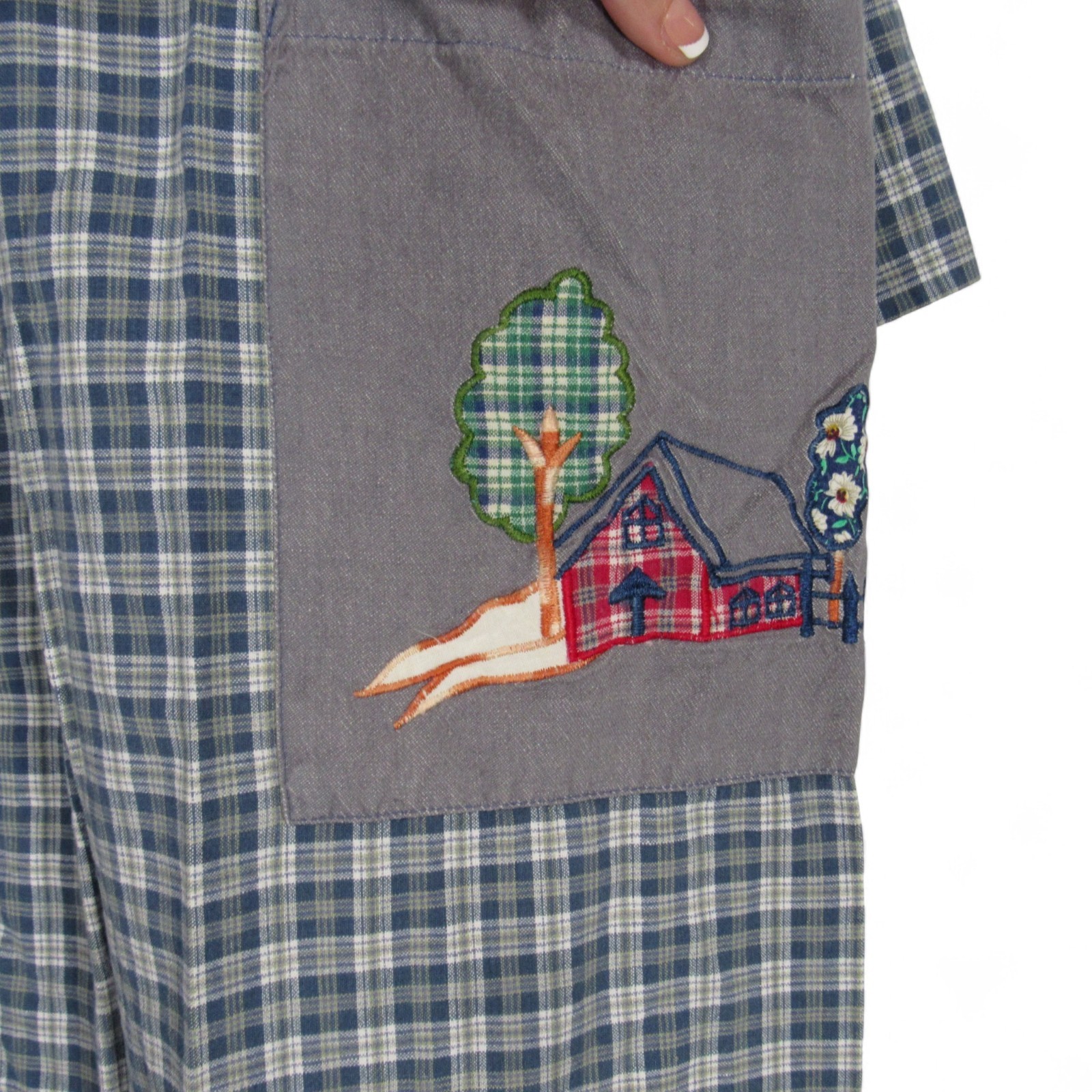 как выглядит VTG SAYBURY Gray TWILL Snap PLAID PRINT Embroidered Detail ROBE/HOUSE DRESS Sz L фото