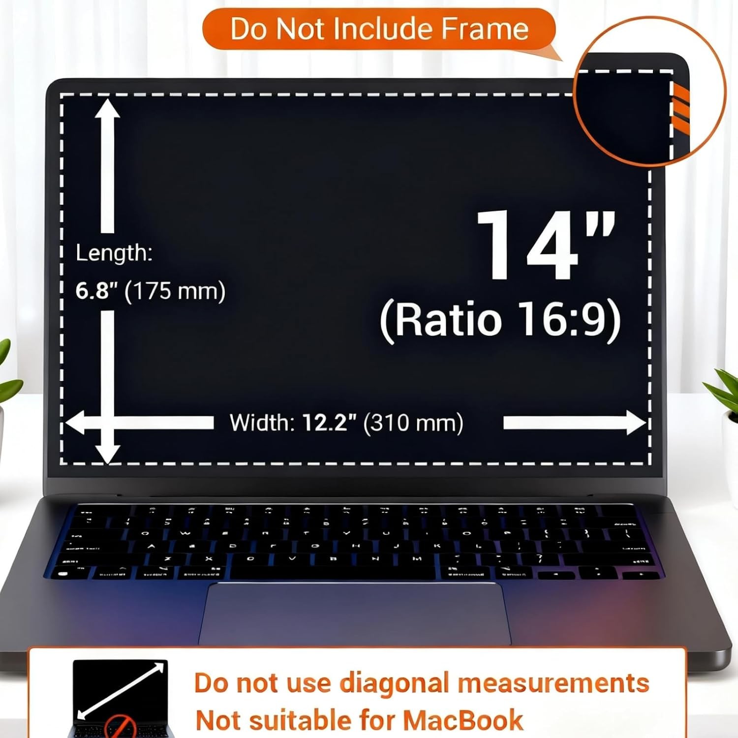 Magnetic Laptop Privacy Screen 14 Inch 16:9, Removable Shield Filter Protector