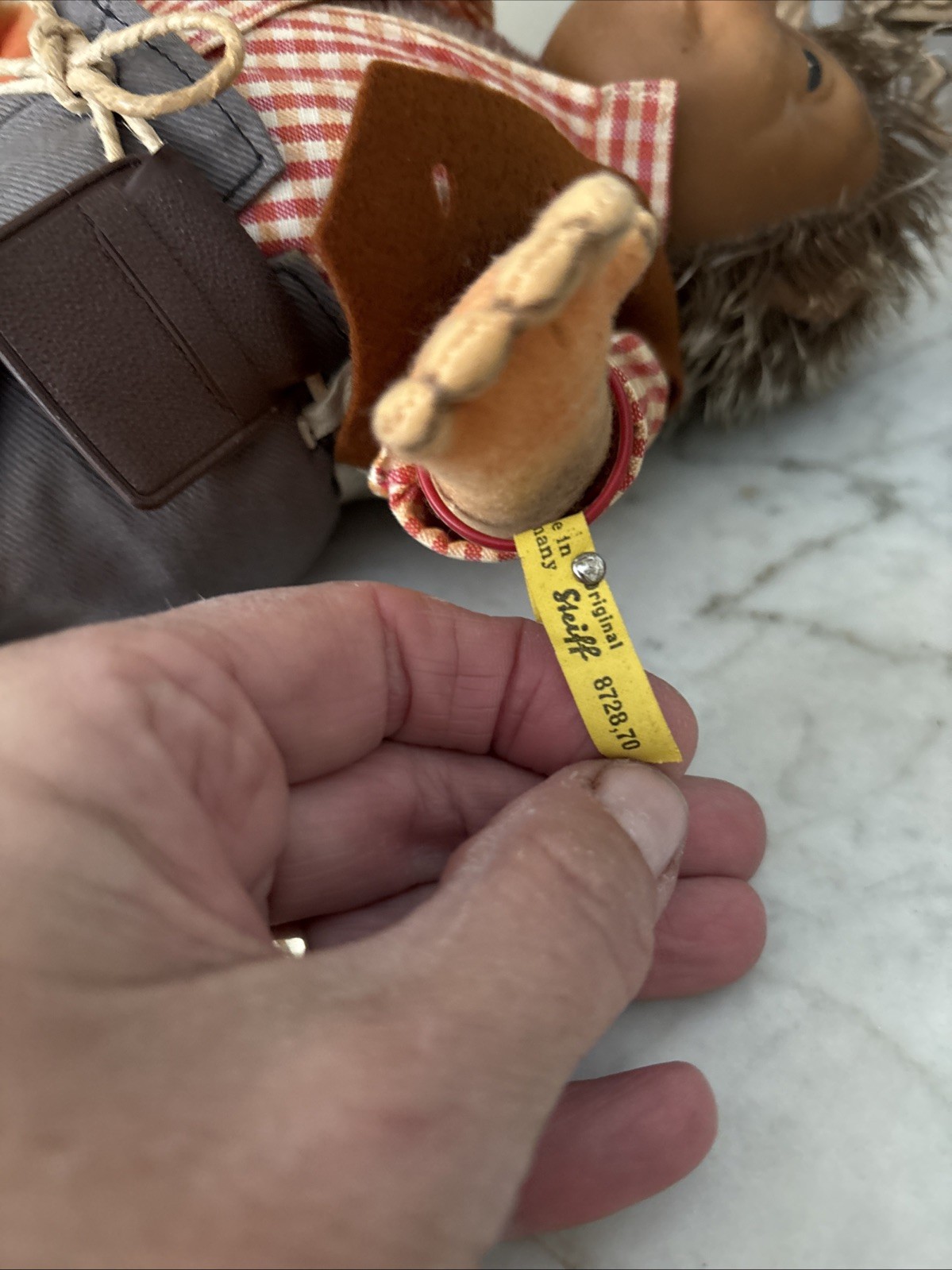 Steiff Vintage Hedgehog Mecki The Father Doll w/Tag 1960s 10 1/2 Tall Version