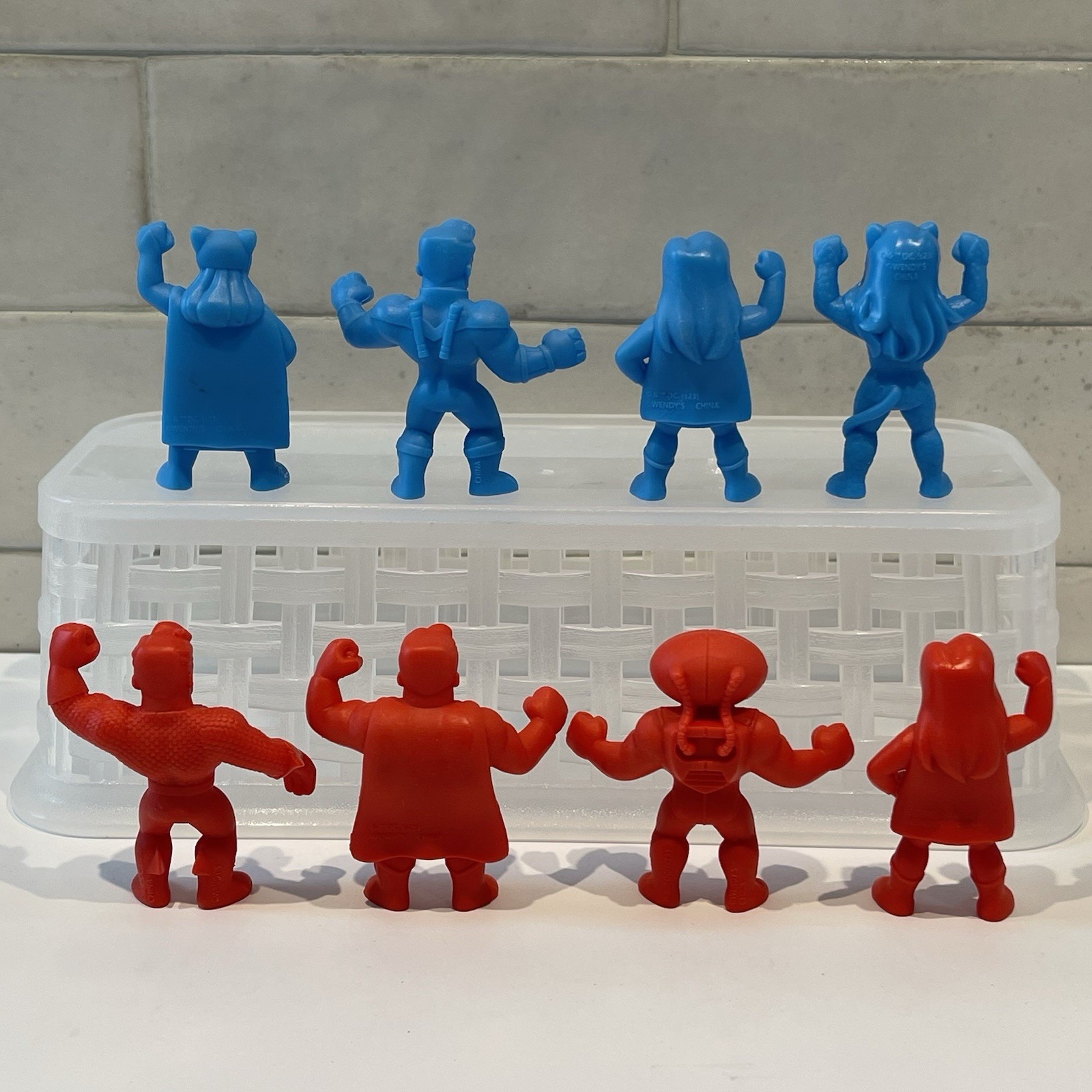 Wendy s Kids Meal Toys DC Super Heroes Mini Figures 8 Piece Lot 4-Red 4-Blue