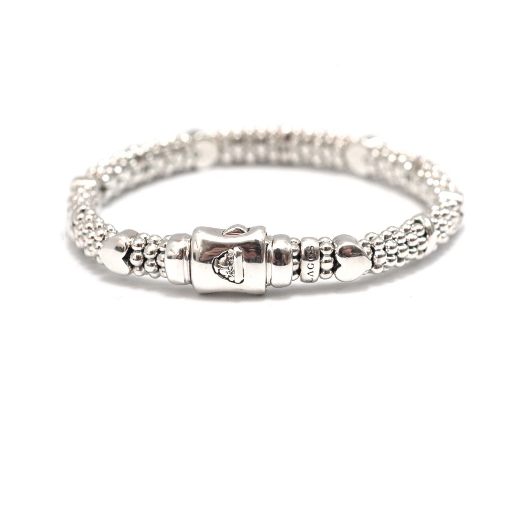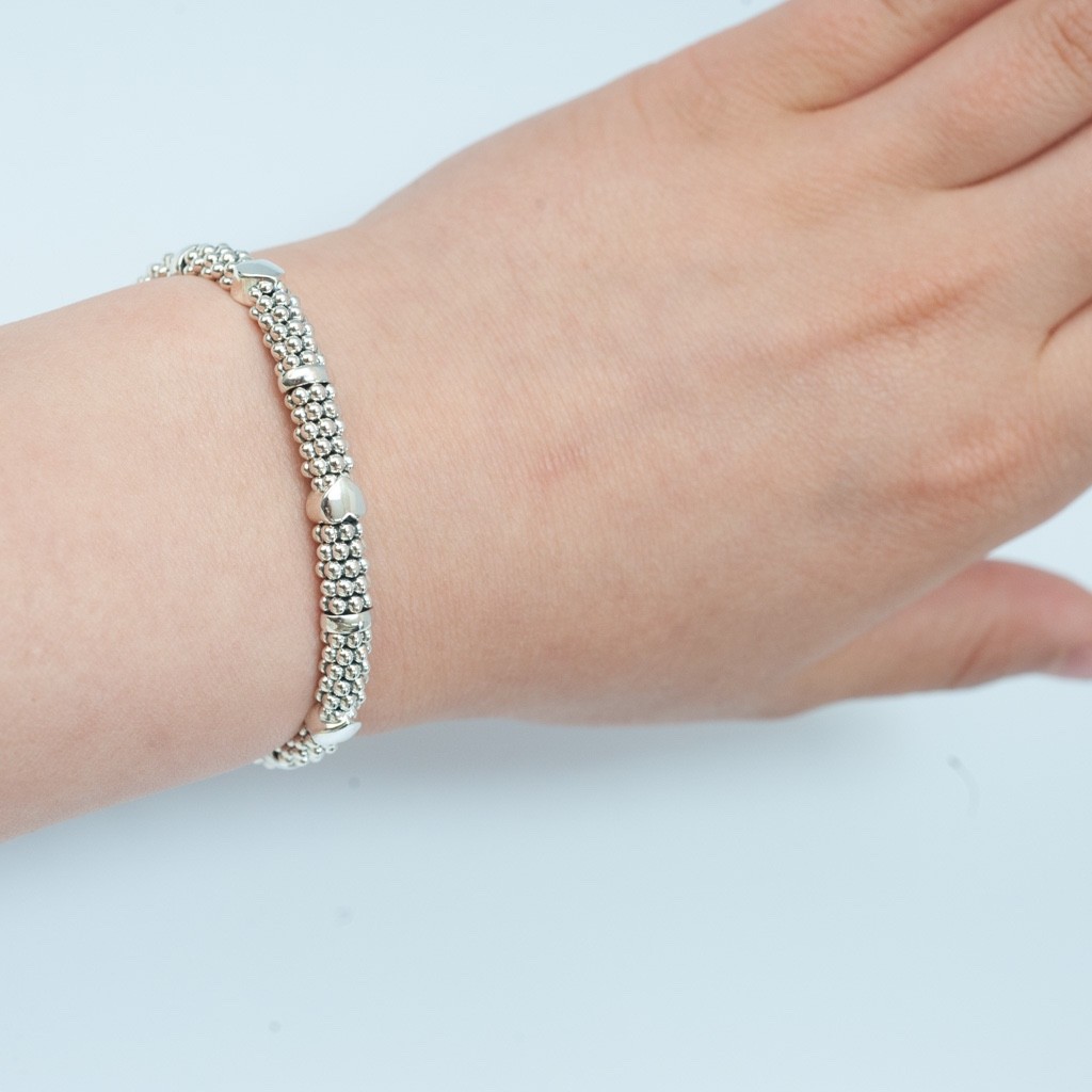 как выглядит LAGOS Sterling Silver Kinder Girls First Caviar Hearts Bracelet Size 6 New фото