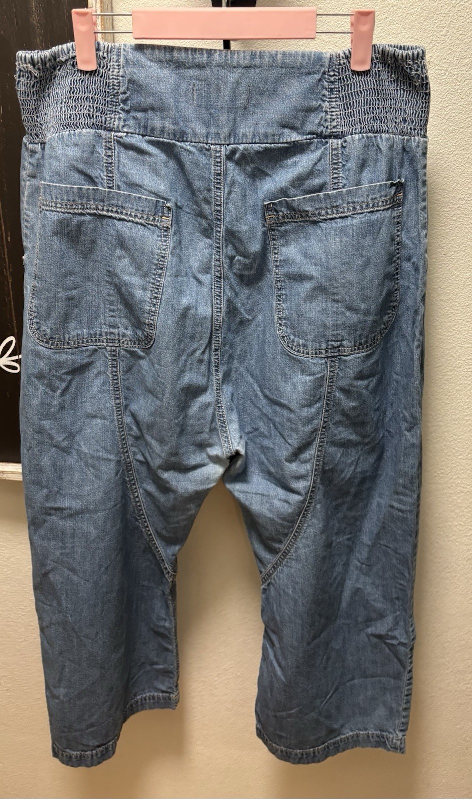 We The Free Lunan Pull On Smocked Waist Crop Relaxed Harem Jeans Women s Large L