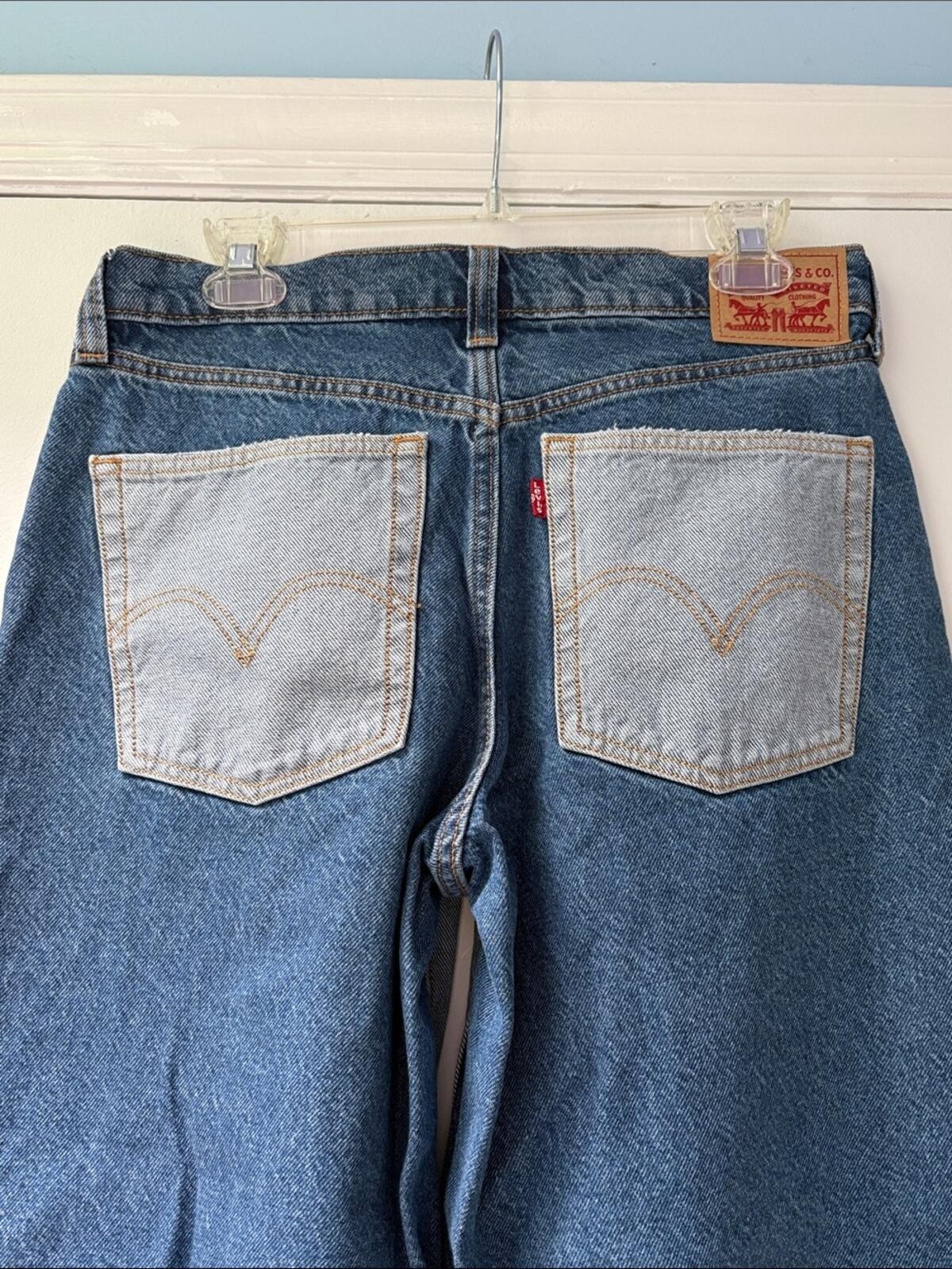 как выглядит New Levis Blue Two-Tone 94 Baggy Wide Leg Mid Rise Jeans Womens Size 29 X 31 фото
