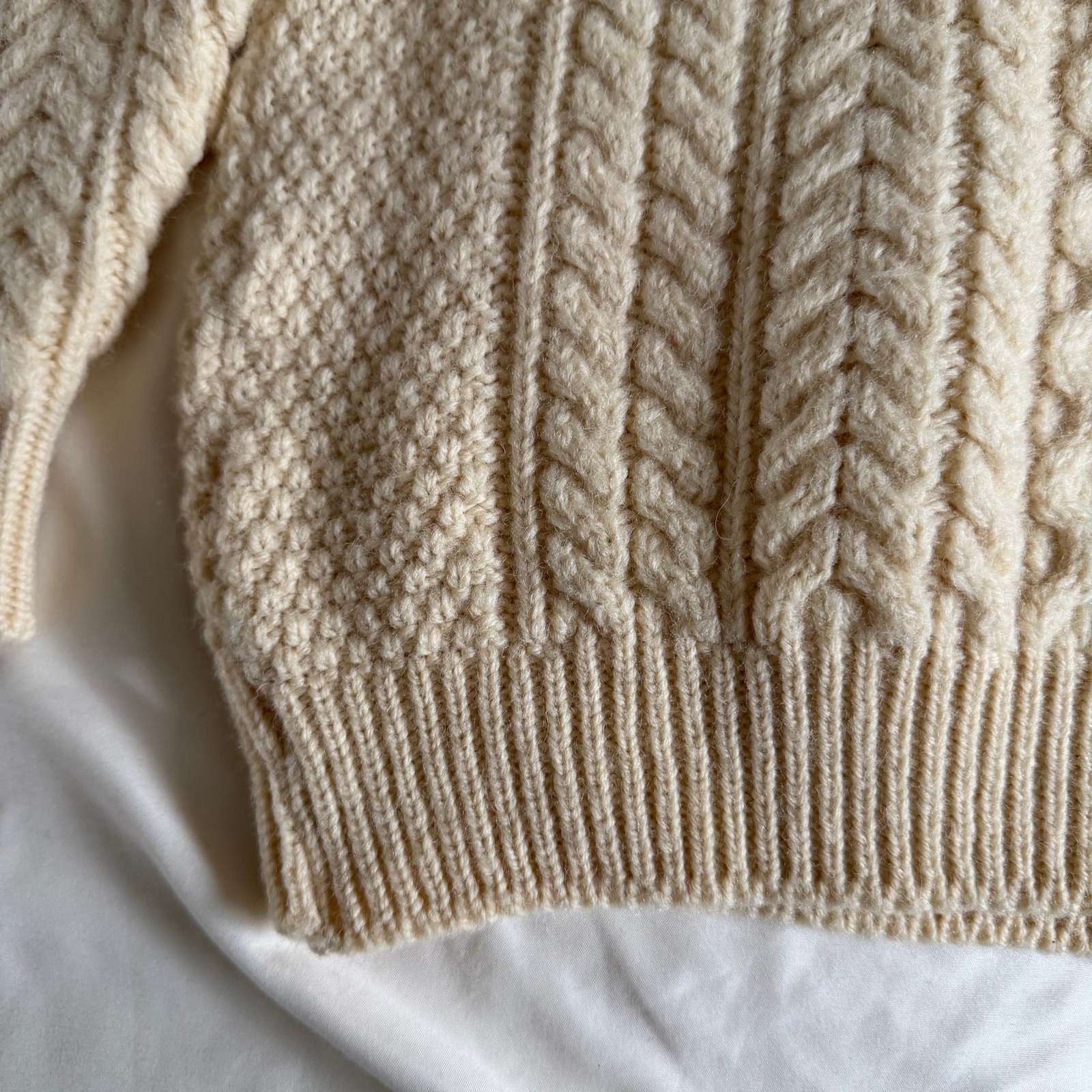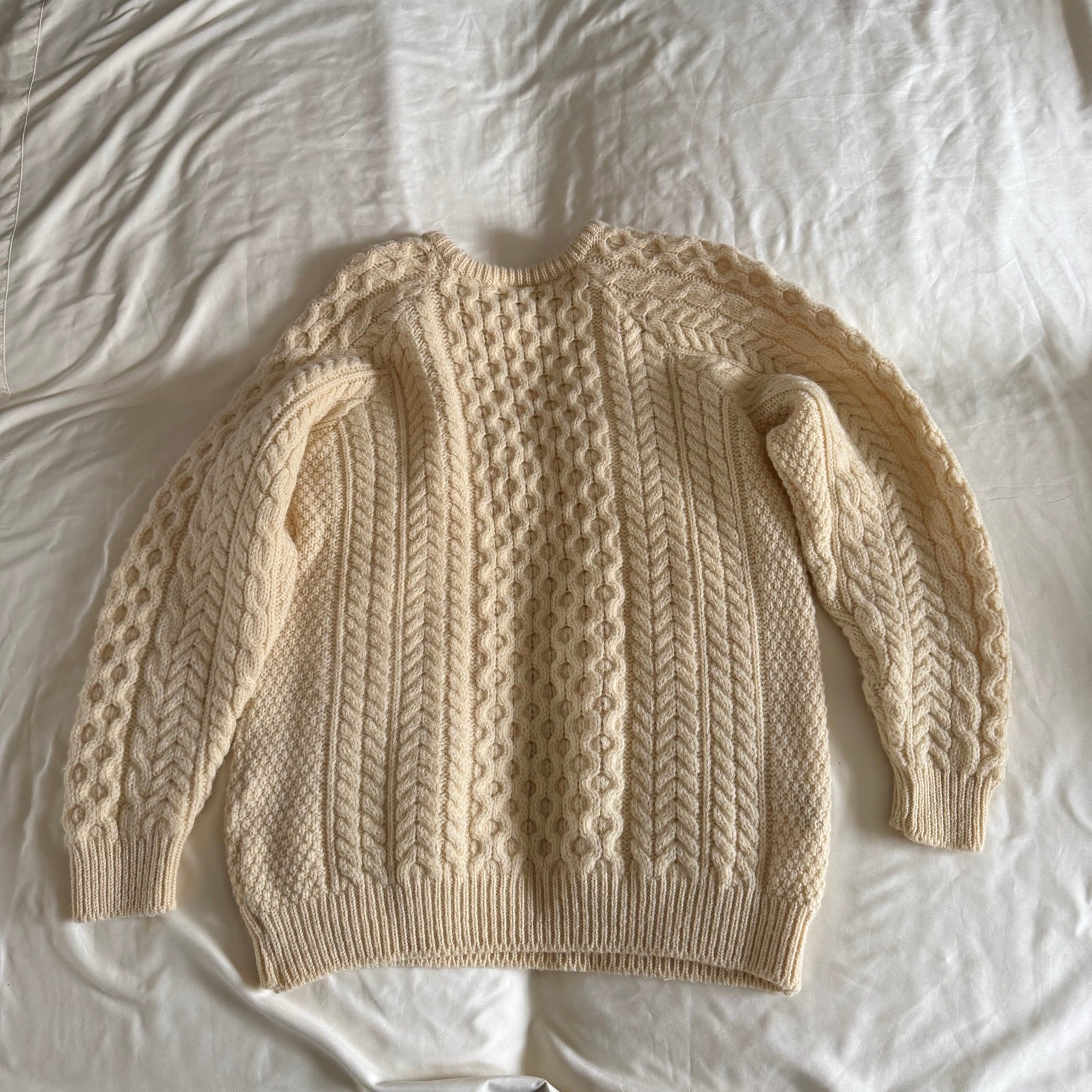 Vtg Carraig Donn Cream 100 Irish Wool Crew Cable Knit Sweater Sz 42 Fisherman