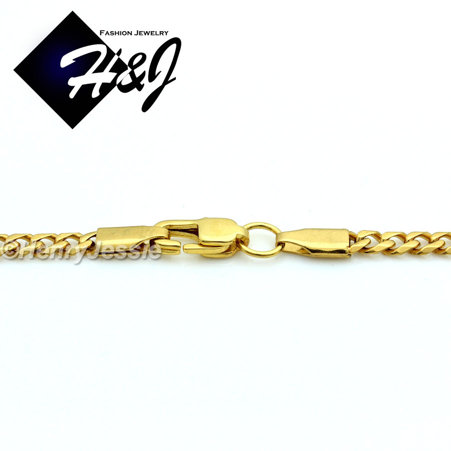 16-36MEN WOMEN Stainless Steel 3mm Gold Plated Miami Cuban Curb Chain Necklace