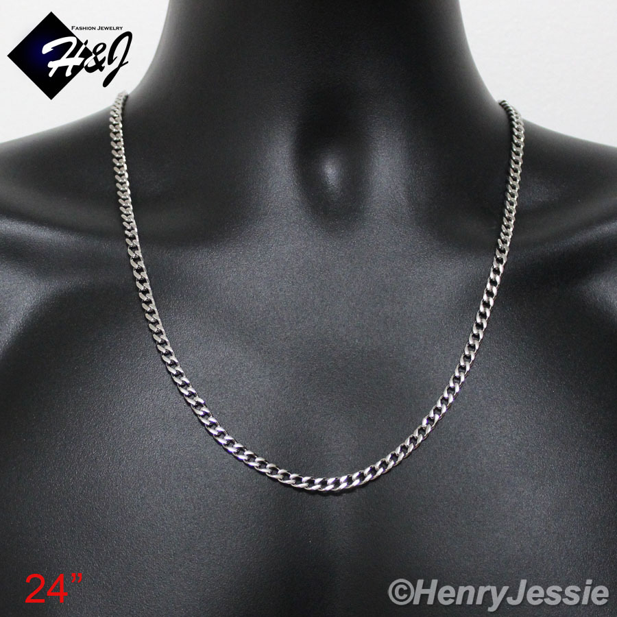 18-40MEN's Stainless Steel 5mm Silver Cuban Curb Link Chain Necklace