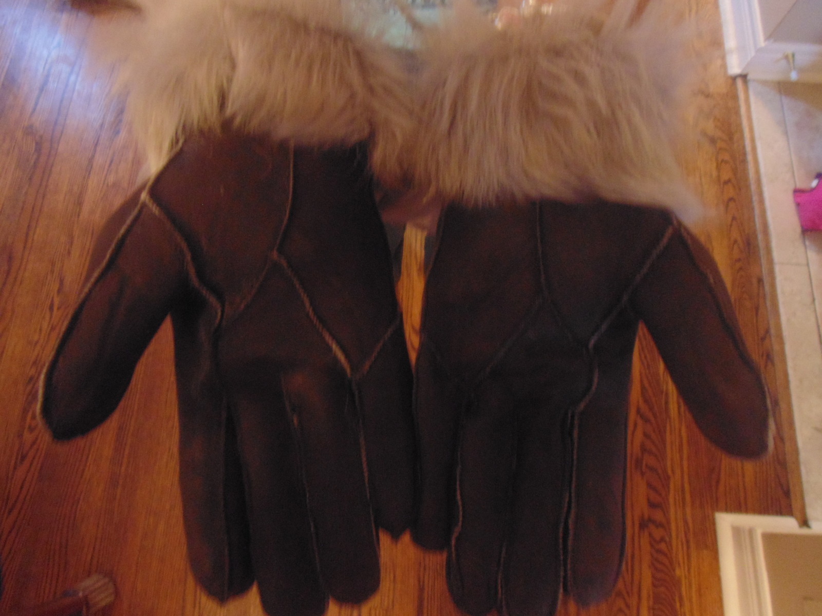 как выглядит New Womens Dark Brown Sheepskin Fur Gloves wth sheepskin Fur Trim Design фото