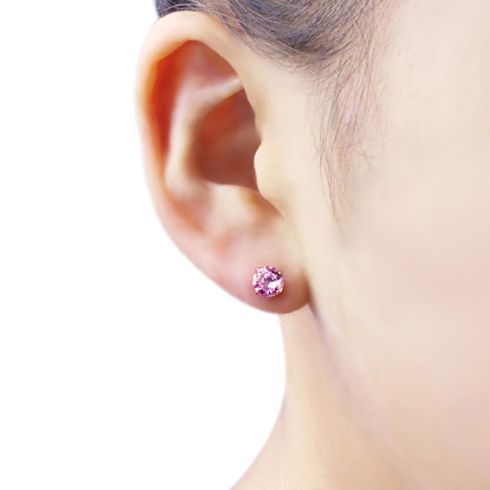 как выглядит 14K Yellow Gold 6mm Pink Cubic CZ Prong Set Solitaire Screwback Stud Earrings фото