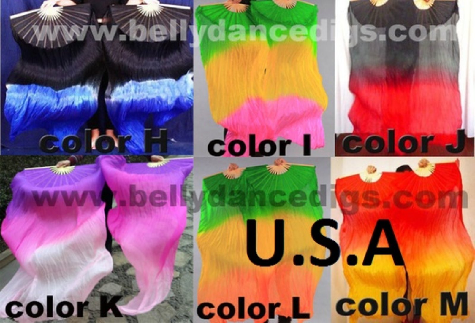Silk Fan Veils Belly Dance 100 Silk Quick Ship USA Store