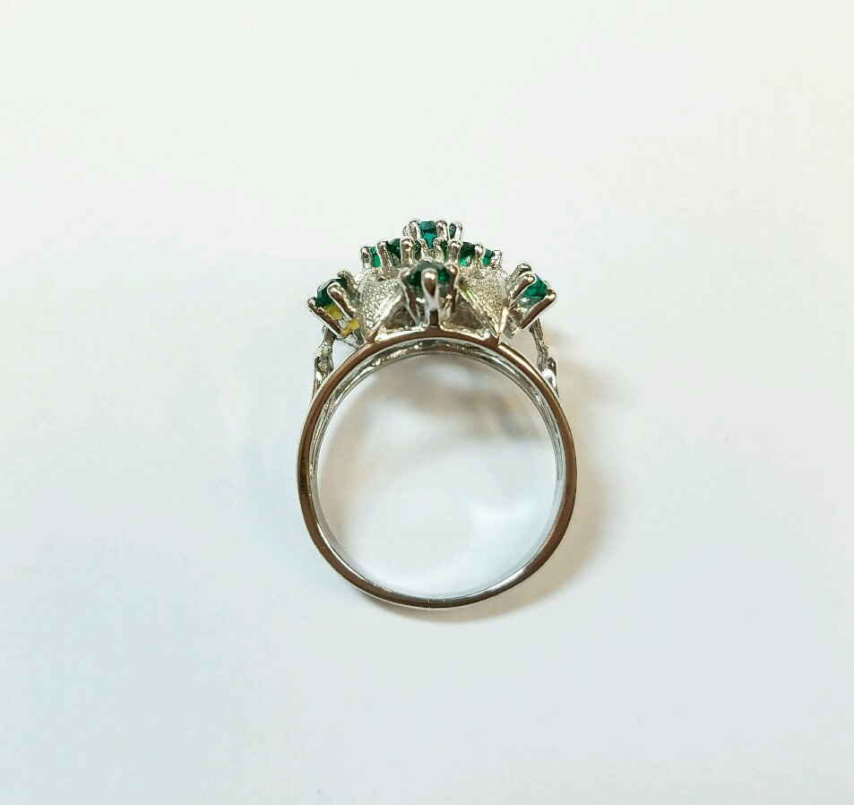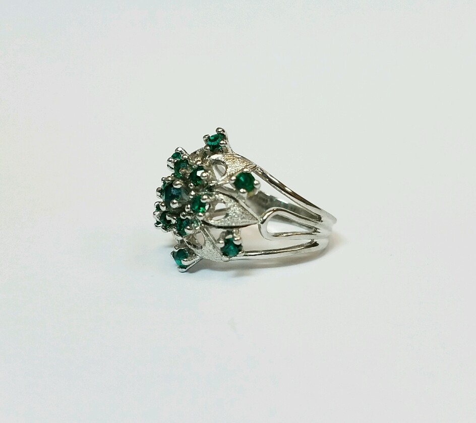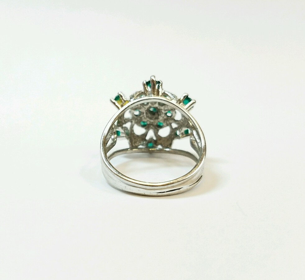 как выглядит STERLING SILVER RING WITH BRIGHT GREEN SYNTHETIC STONES SIZE 7 1/4 фото