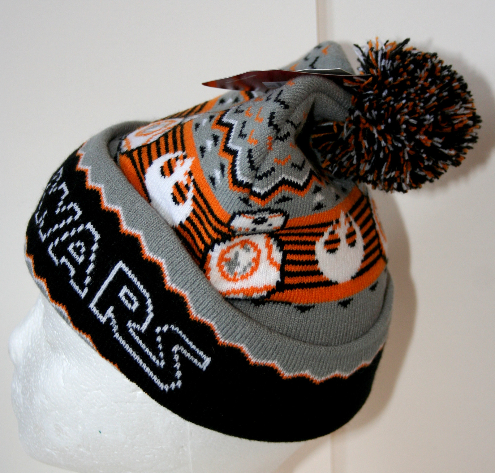 • Star Wars BB-8 Droid Pom-Pom Snowflake Sweater Look Knit Cap Hat New 2016