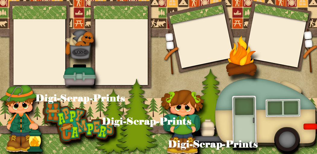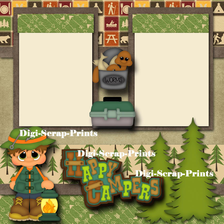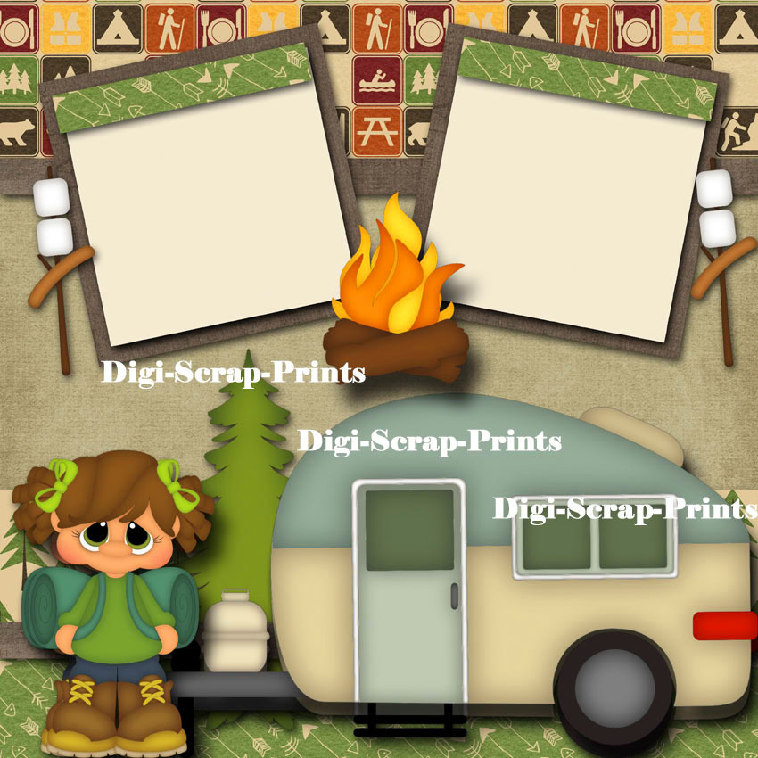HAPPY CAMPER 2 premade scrapbook pages paper piecing camping DIGISCRAP A0126